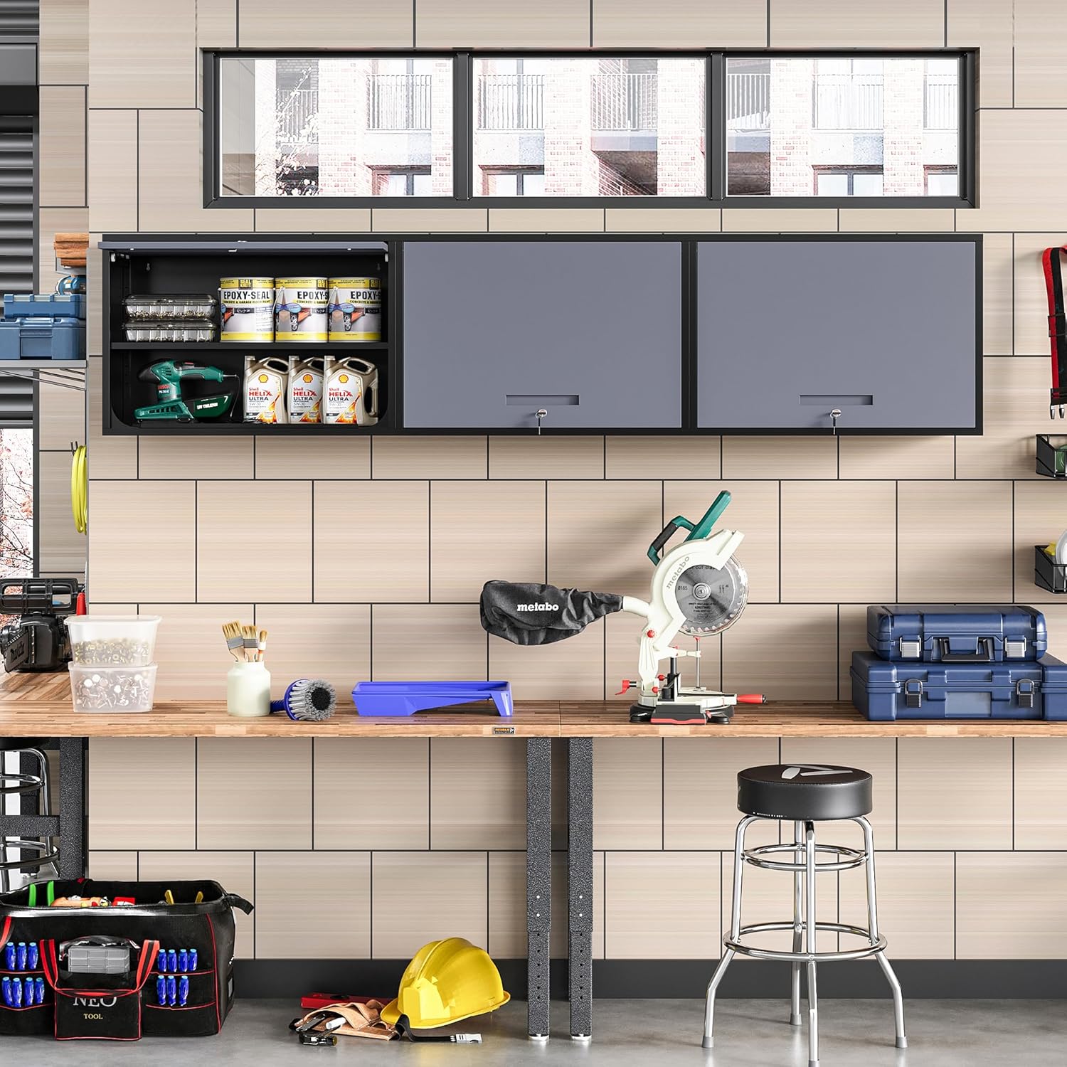 - 【Multipurpose】This lockable wall storage cabinet provides versatility and practicality for your storage needs. Perfect for Garage, Warehouse, Home, Office.