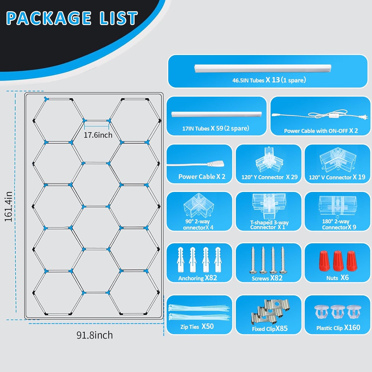 - Favored by DIY Enthusiasts: The hexagon garage grid hanging light allows you to easily adjust the position and angle of the lights using various connectors to suit your specific needs