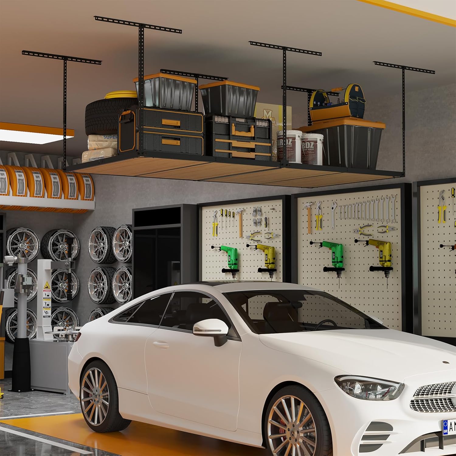 - Adjustable Height: Featuring 6 vertical support bars adjustable from 22" to 40", this rack accommodates different garage ceiling heights and items of various sizes.