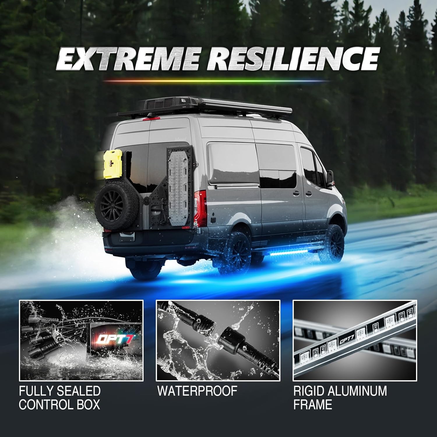 - Durable & Waterproof Resistant: Designed for the rigors of outdoor use, our Underglow LED lights are built with weather-resistant materials to withstand rain, wind, and varying temperatures at an IP67 LED bar, and waterproof cap. Ensure a reliable and long-lasting camping lighting solution that can endure the elements, enhancing the durability of your camping gear.