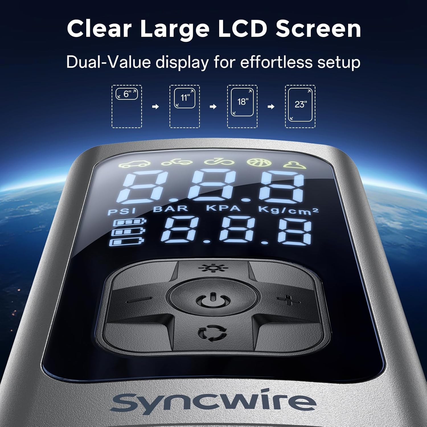 Syncwire Tire Inflator Portable Air Compressor - 150PSI 2X Faster Inflation Smart Air Pump for Car Tires [Extra-Large LCD] with Digital Pressure Gauge, Auto Shut-Off for Car, Motorcycle, Bike & Balls