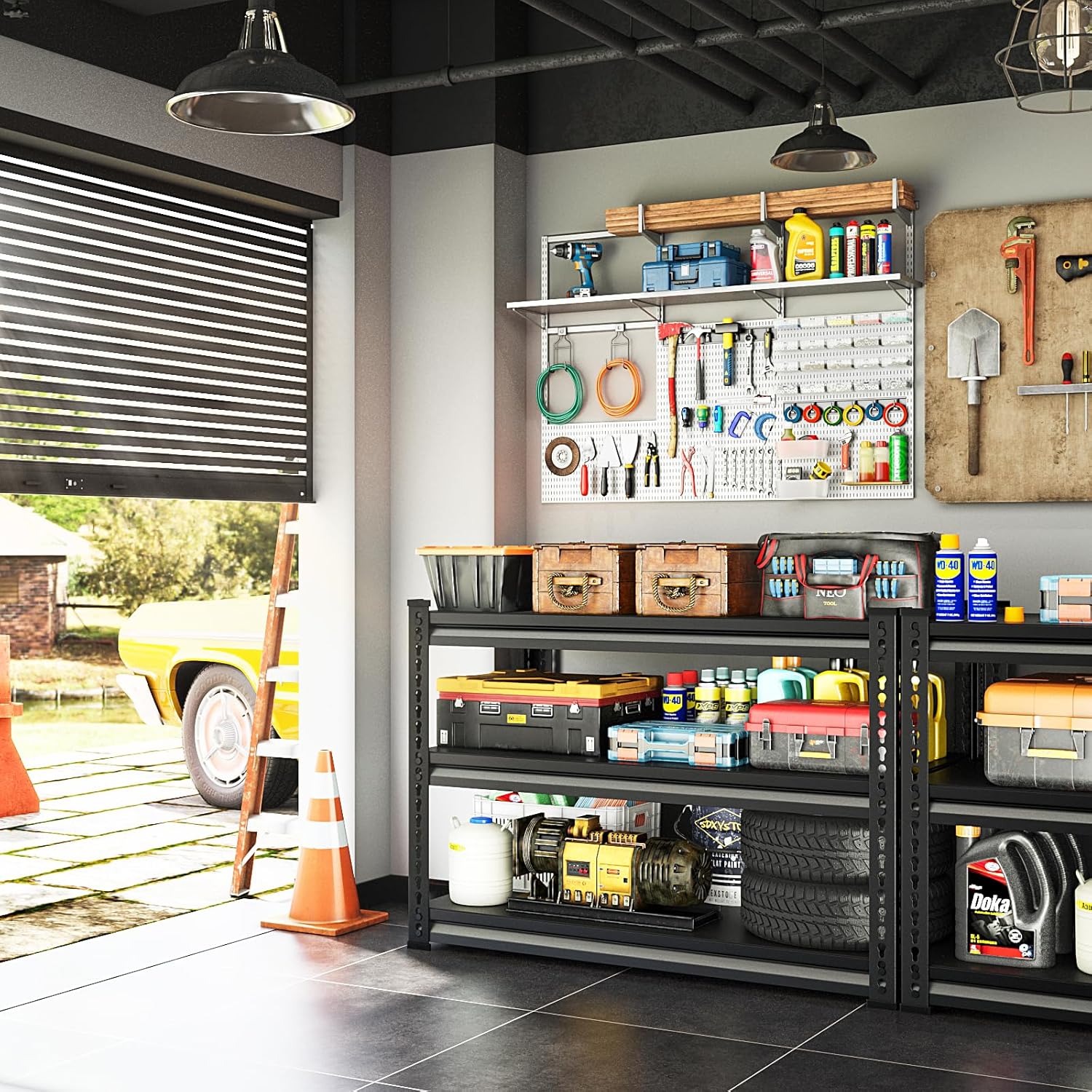 - 【Safe&Rust-Proof】The entire all-metal shelves are locked by pins to ensure crossbeams stay seated and 4 support straps to prevent twisting or spreading. The powder-coated finish on the steel uprights, support straps, and crossbeams, easy to clean, moisture-proof and rust-proof.