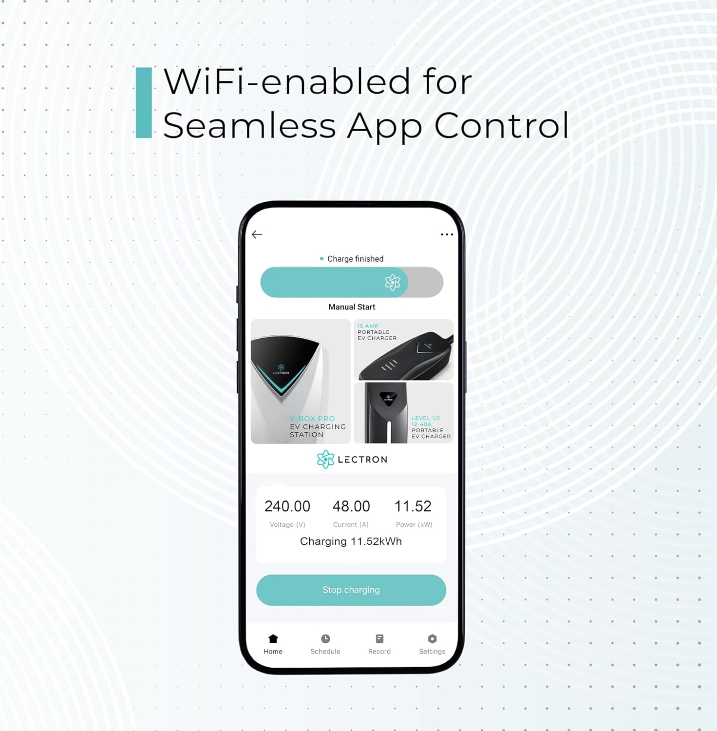 - APP ACCESS - Take control of your charging experience anytime, anywhere with the intuitive Lectron App. Keep tabs on your charging status in real-time, schedule your charging sessions, and even control how many kWh you want to charge your EV