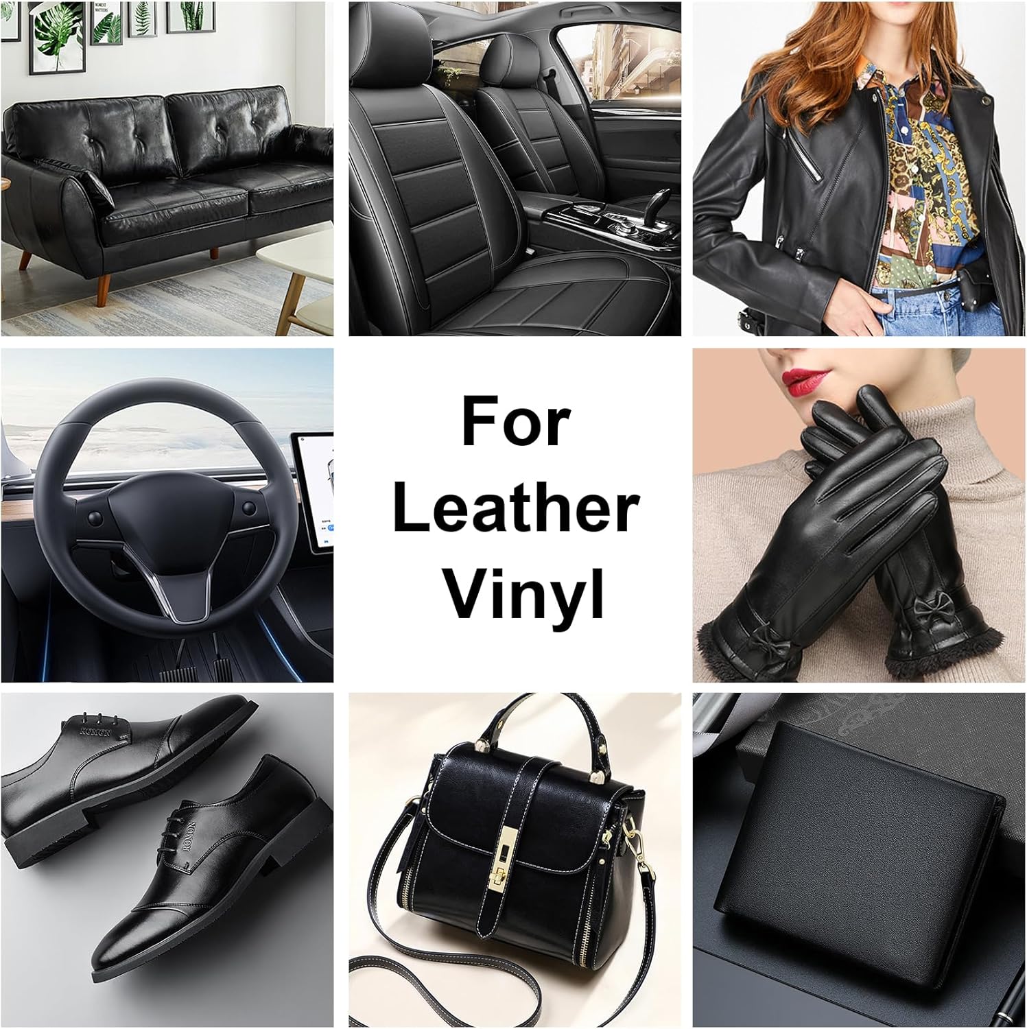 - [ Leather Recoloring Balm] Perfect for leather and vinyl car seats, steering wheels, sofas, shoes, boots, handbags, office chairs, wallets, belts, jackets, and all kinds of smooth leather products. Leather dye all-in-one kit meets diverse restoration needs for all your leather better, from automotive interiors to household items