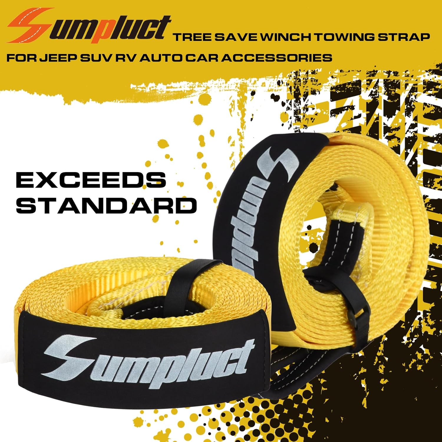 - PREMIUM QUALITY & WEATHER RESISTANT: Our tow strap kit is made from tightly moisture and heat resistant Polyester material. Wash and keep it clean to elongate its lifespan, Reinforced loops protect against abrasion.