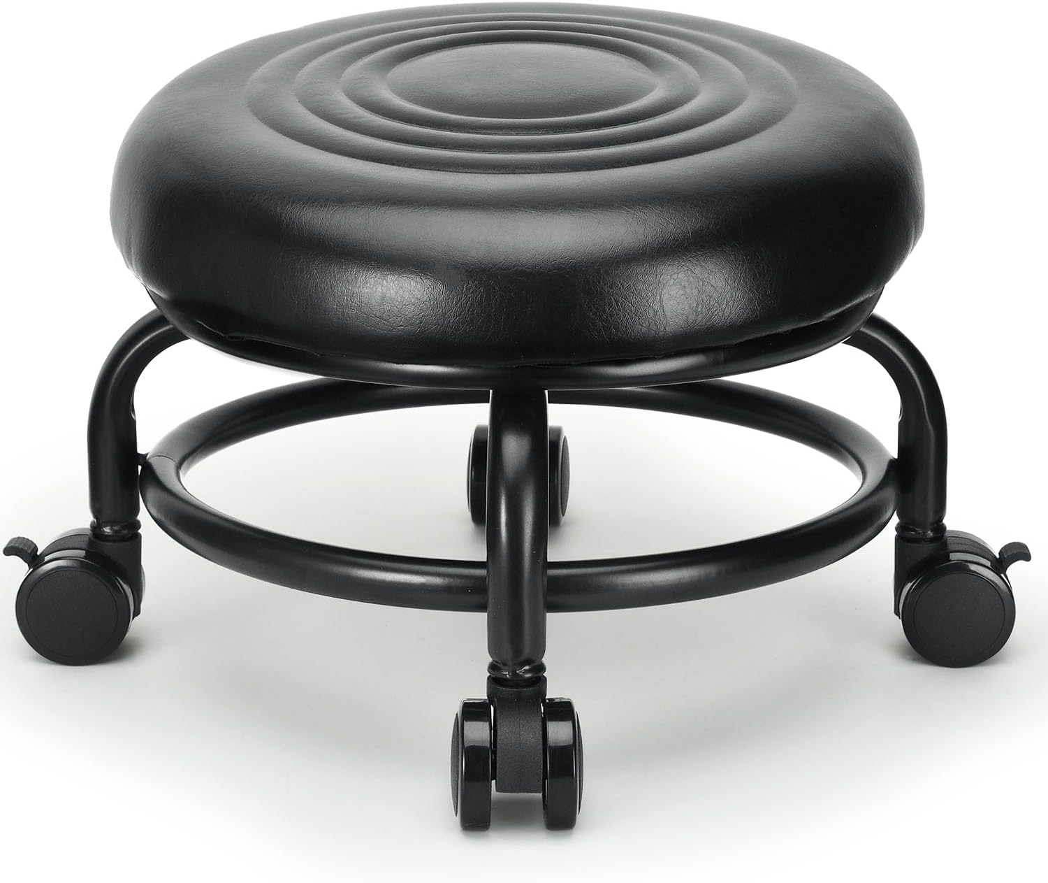 Low Height Rolling Stool Low Roller Stool PU Leather Comfortable Chair, Modern Low Rolling Stool for Home Office Garage Shop