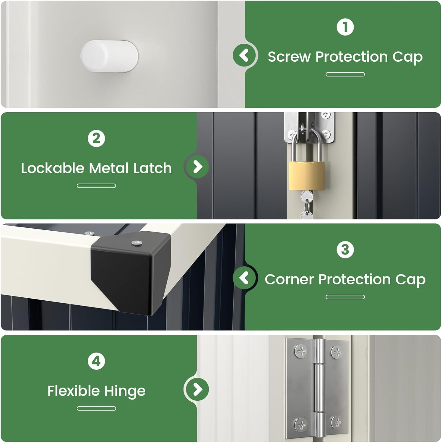 - Effortless Installation: Compared to previous screw fixation structures, this garden shed boasts convenient snap-on structures, which could reduce the number of screws by 30%, making installation easier than before. For safety, we recommend two people wearing gloves and safety glasses during assembly. The detailed instructions and assembly video are provided to help you.