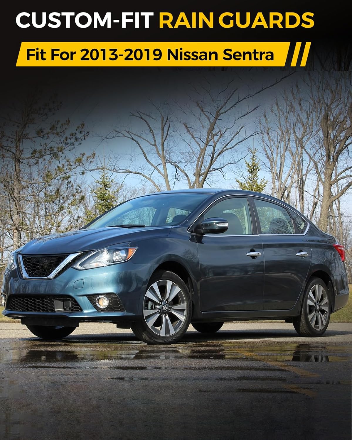 - 【Applicable Vehicles】The window visor is designed to fit your vehicle based on its year, brand, and model. These high-quality automotive window rain guards CUSTOM FIT only for 2013-2019 Nissan Sentra.