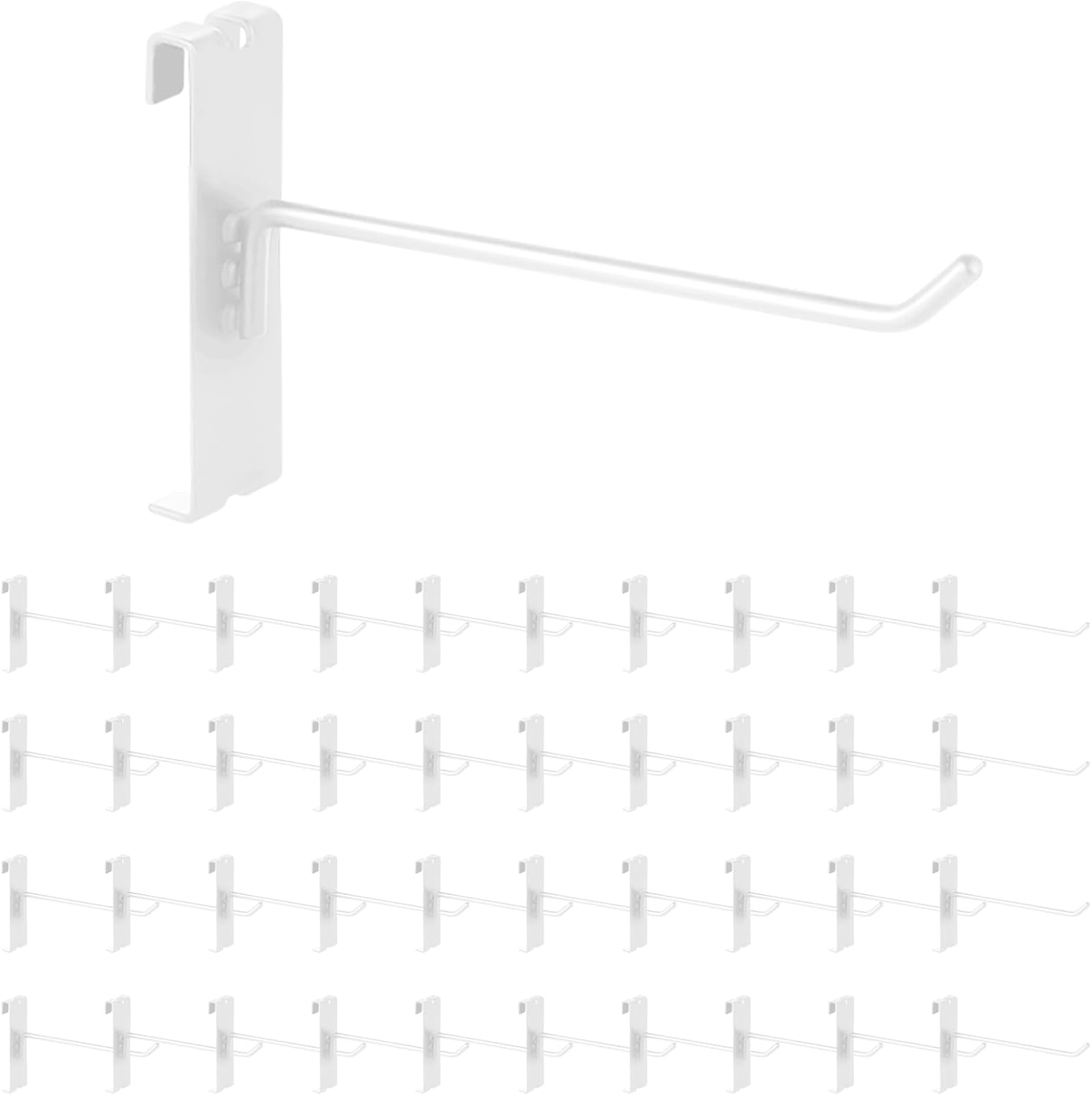 40Pcs 6" Gridwall Display Hooks Assortment Set, White Metal Grid Wall Panel Hanging Display Hook for Garage Shop Retail Storage, Wire Diameter 5mm/ 0.2”