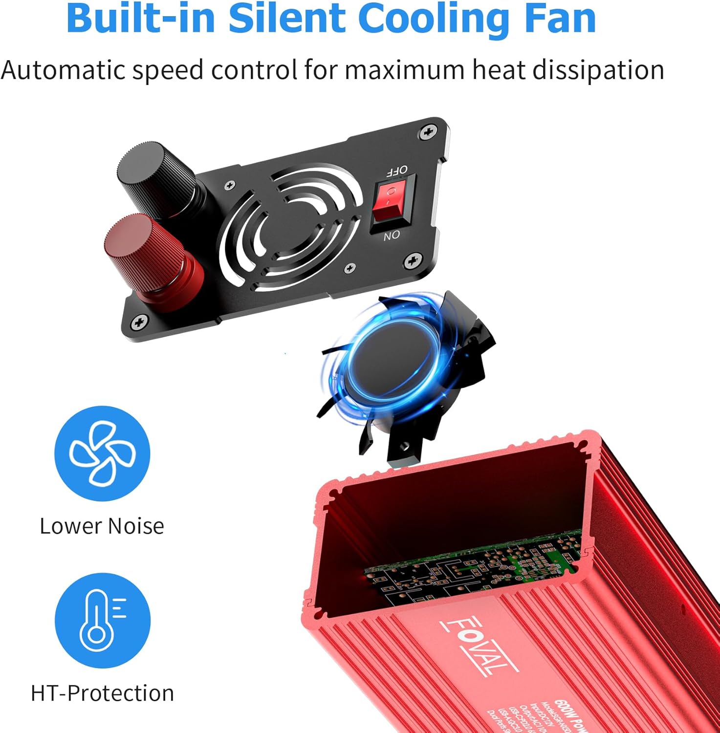 - 【What You Get】FOVAL 600W Power Inverter with 24-inch cigarette lighter plug, 2pcs battery clips, user manual, 24-month warranty, and friendly customer service. If you aren't satisfied with the product, please feel free to contact us, and we will solve it for you in the first time.
