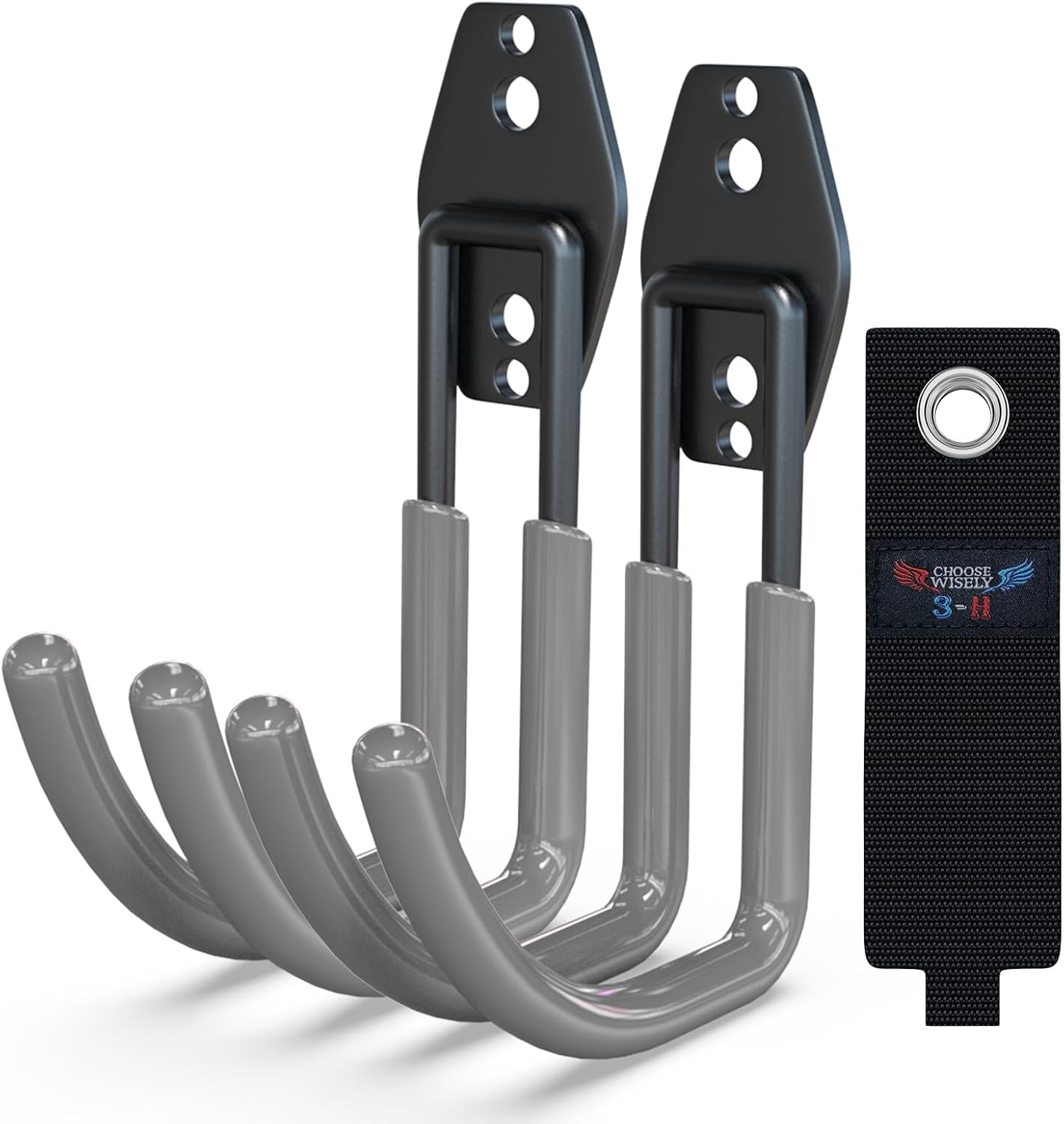 3-H Garden Hose Holder Wall Mount 2 Pack,Solid Steel Hose Hanger,Water Hose Holders for Outside,Perfect for Hanging Outdoor Air Hose,Ropes,Pipes,Garden Tools,Ladders,Bikes,Bulk Items(Gray)