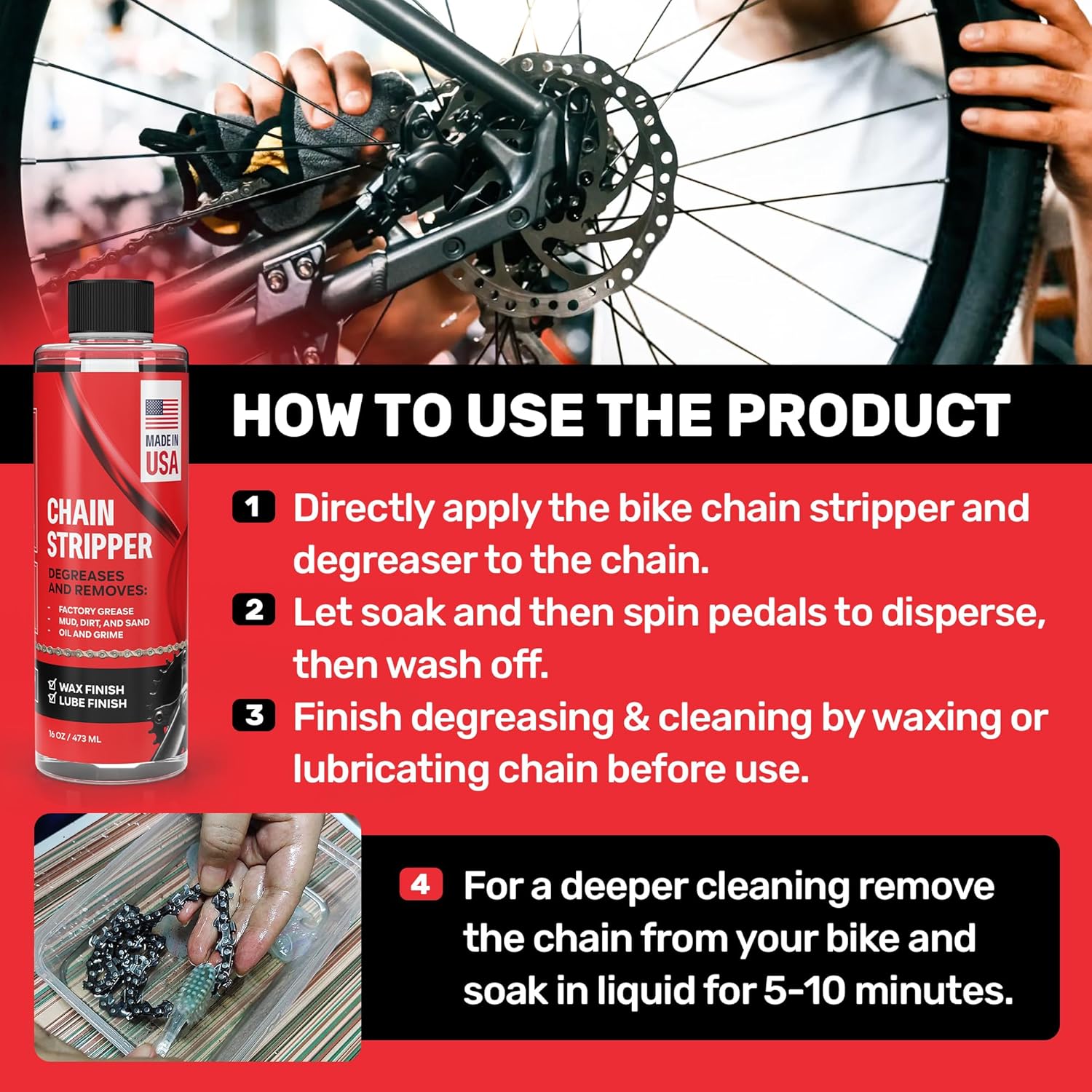 - Made in the USA: Bike Chain Degreaser + Stripper is produced and bottled in the USA, ensuring it meets the highest quality standards