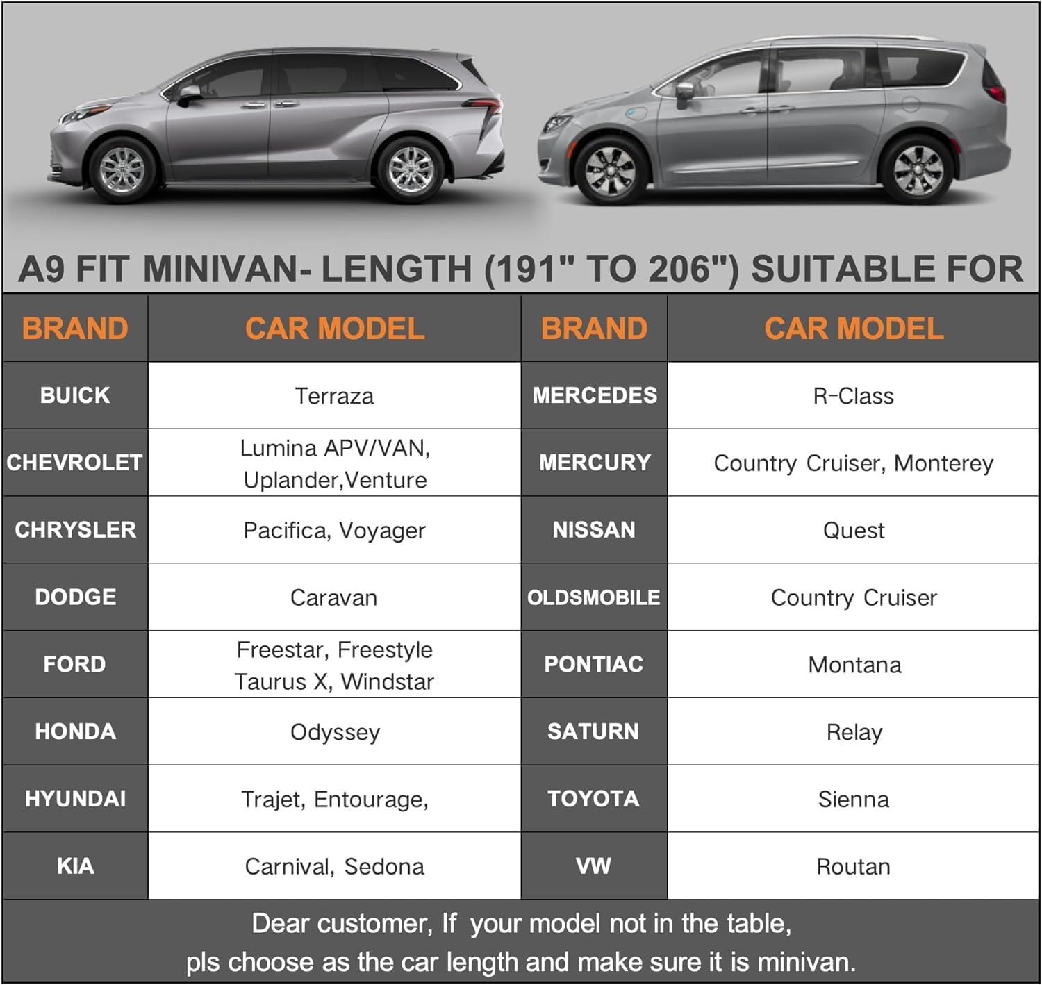 - 【Dimension A9】Universal fit for Minivan / Station Wagon, MPV which length is 191-206 inch. (NOT FOR SEDAN/SUV). Such as Honda odyssey, Toyota sienna, Chrysler pacifica/town&country/Voyager, Dodge grand caravan, Volvo v90 etc.Come with a large enough and waterproof portable storage pocket to store the cover.
