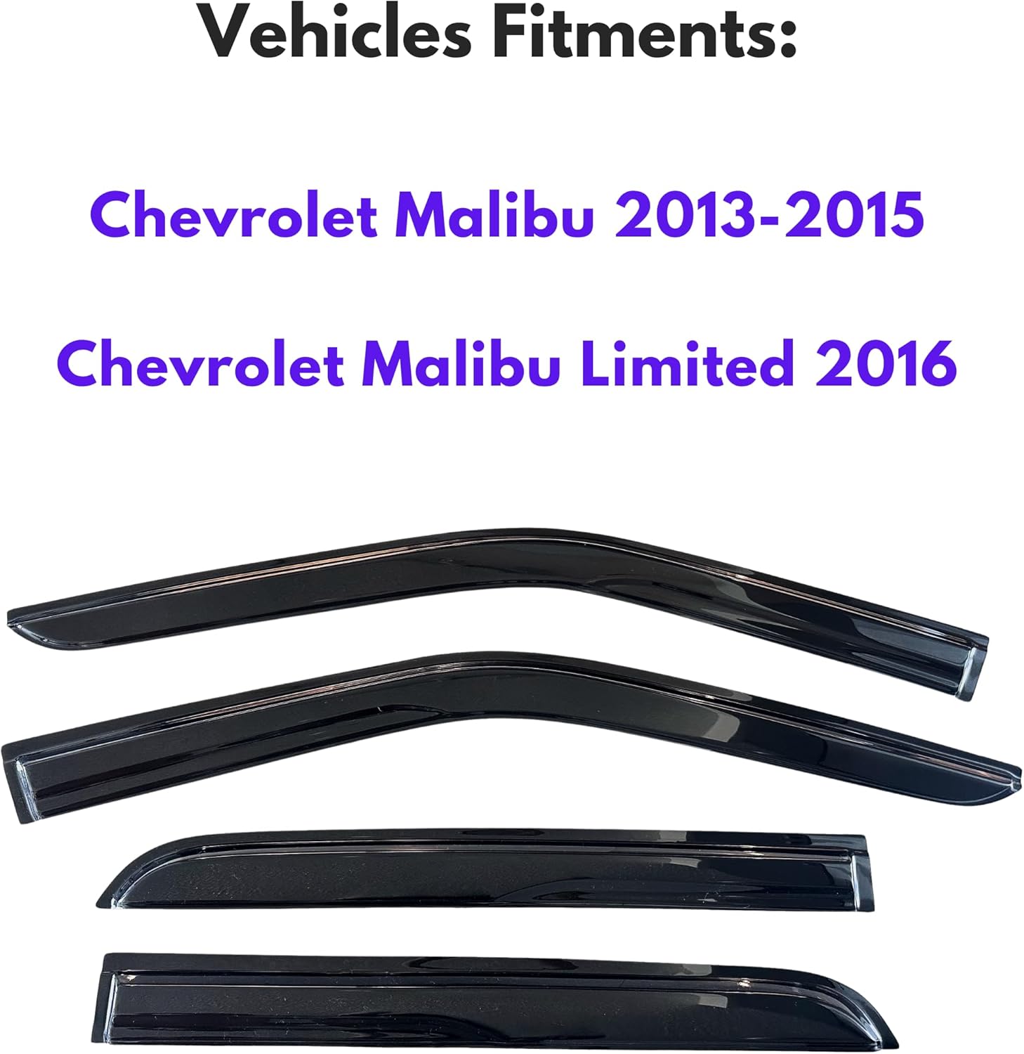 KPY Window Visor Compatible with Chevrolet Chevy Malibu 2013-2015 & Malibu Limited 2016, 4PC Rain Guard Side Window Vent Deflectors Tape-On Mugen Style, 2013 2014 2015 2016