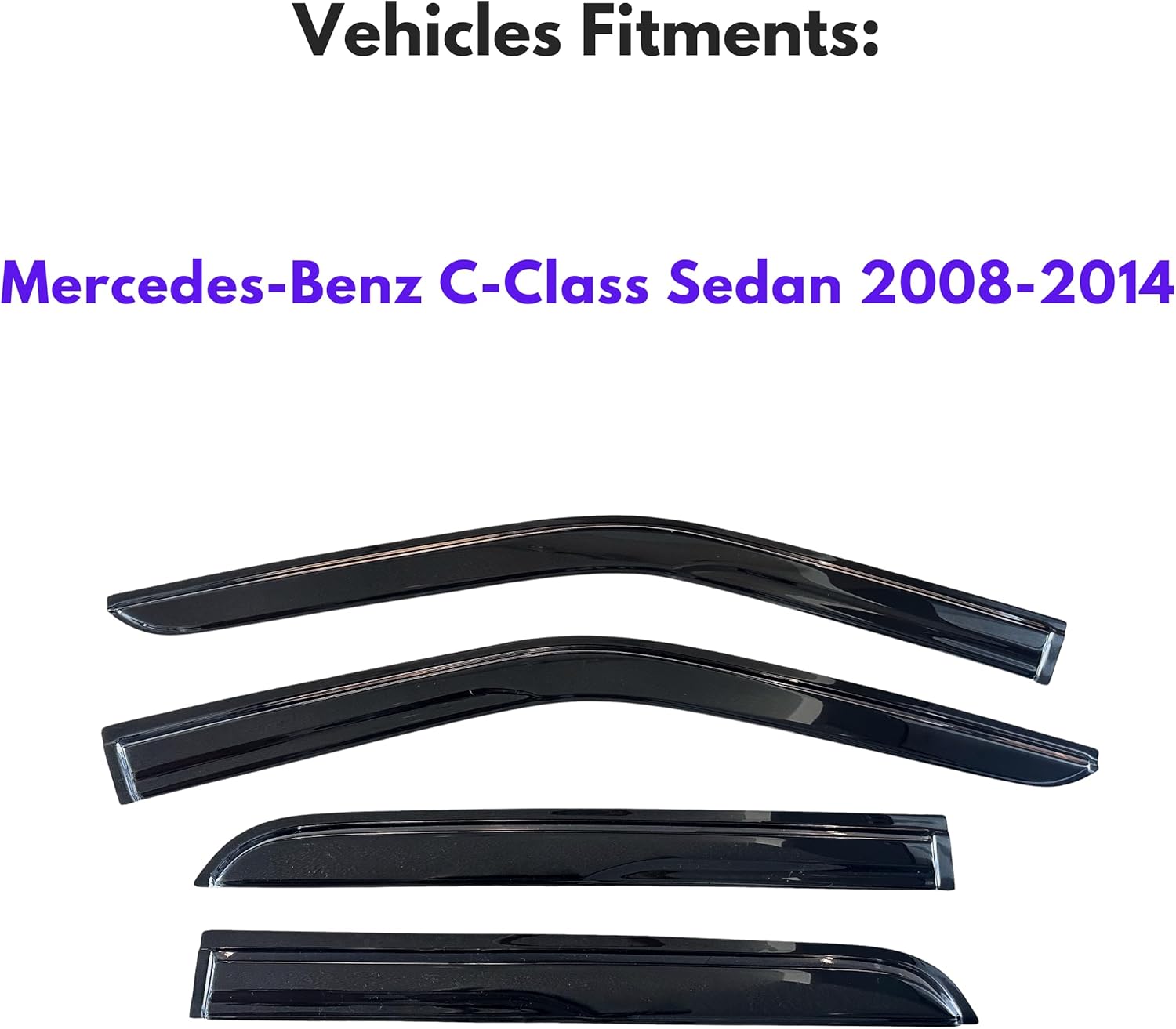 KPY Window Visor Rain Guard for 2008-2014 Mercedes-Benz C-Class Sedan, Tape-On Window Deflectors Vent Visor Shades for 08 09 10 11 12 13 14 C250 C300 C350 C63