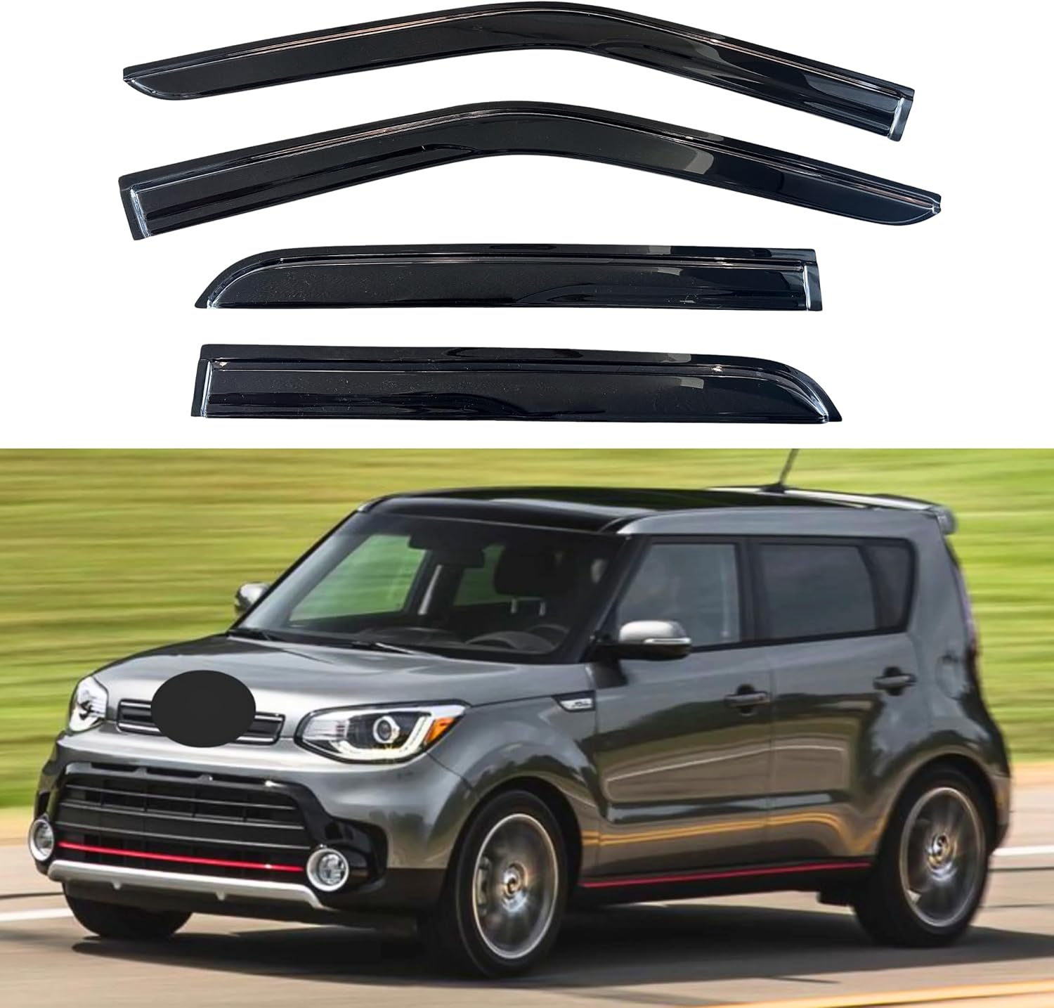 - 【Perfect Fit】KPY window visors rain guards vent deflectors compatible with Kia Soul 2014 2015 2016 2017 2018 2019 (Mugen Style)