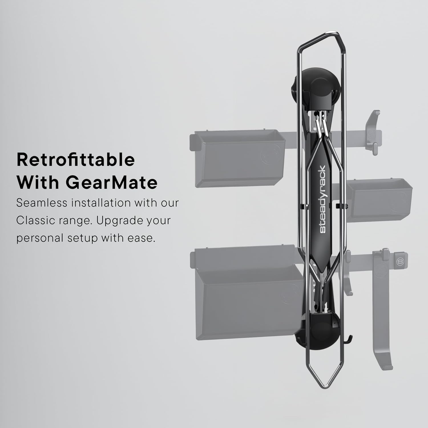 - Roll in, store smart – Say goodbye to heavy lifting. Invented by Steadyrack, the roll in roll out system allows you to simply balance your bike on the rear wheel and roll it into place—our patented design makes storage smooth and effortless.