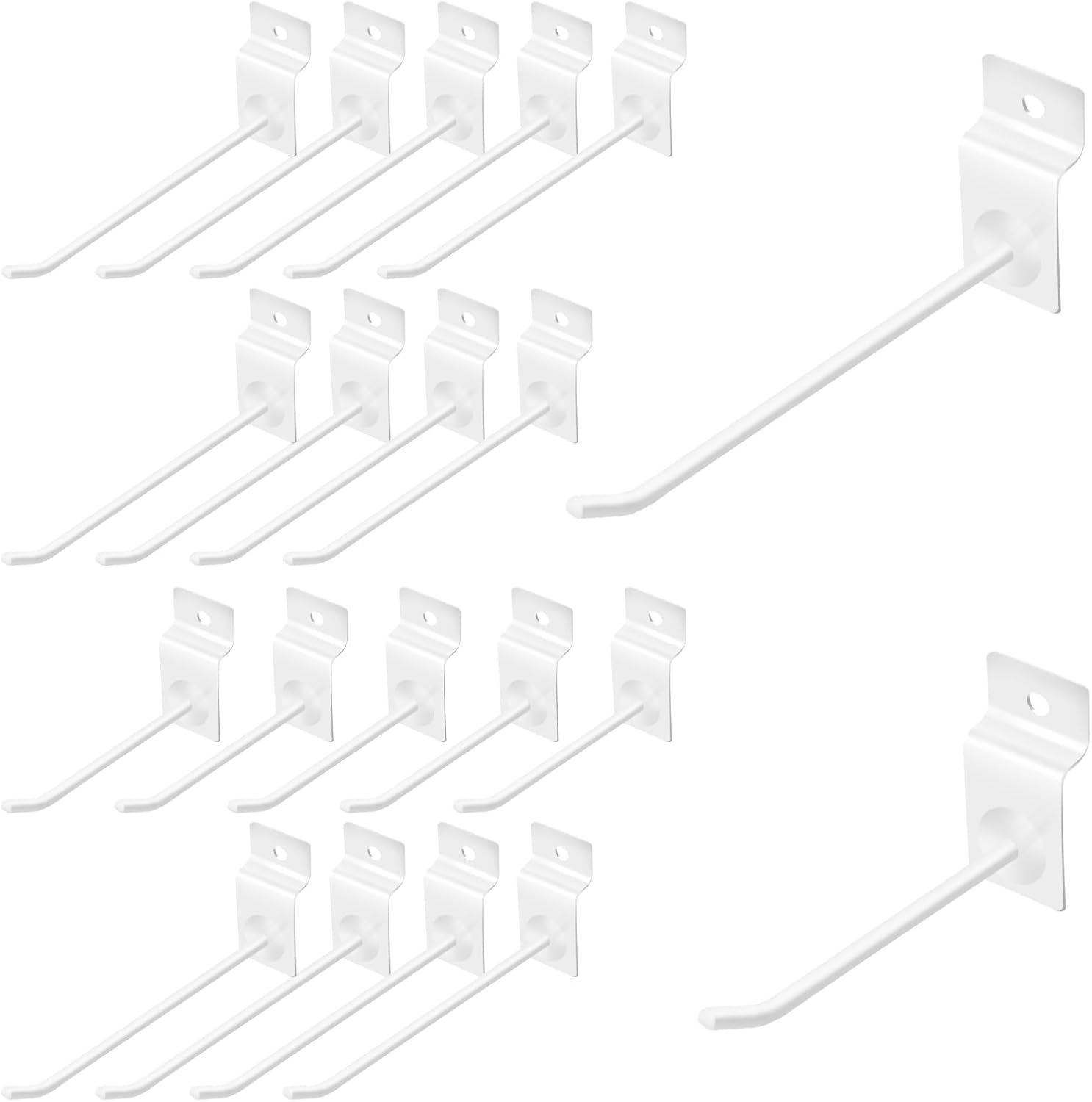 - [What you Get] The white slatwall accessories kit contains 10pcs 4”/ 10cm slatwall hanger hooks, 10pcs 6”/ 15cm slatwall hanger hooks, totally 20pcs. The nice the combination of enough quantity will meet your space planning or replacement needs.