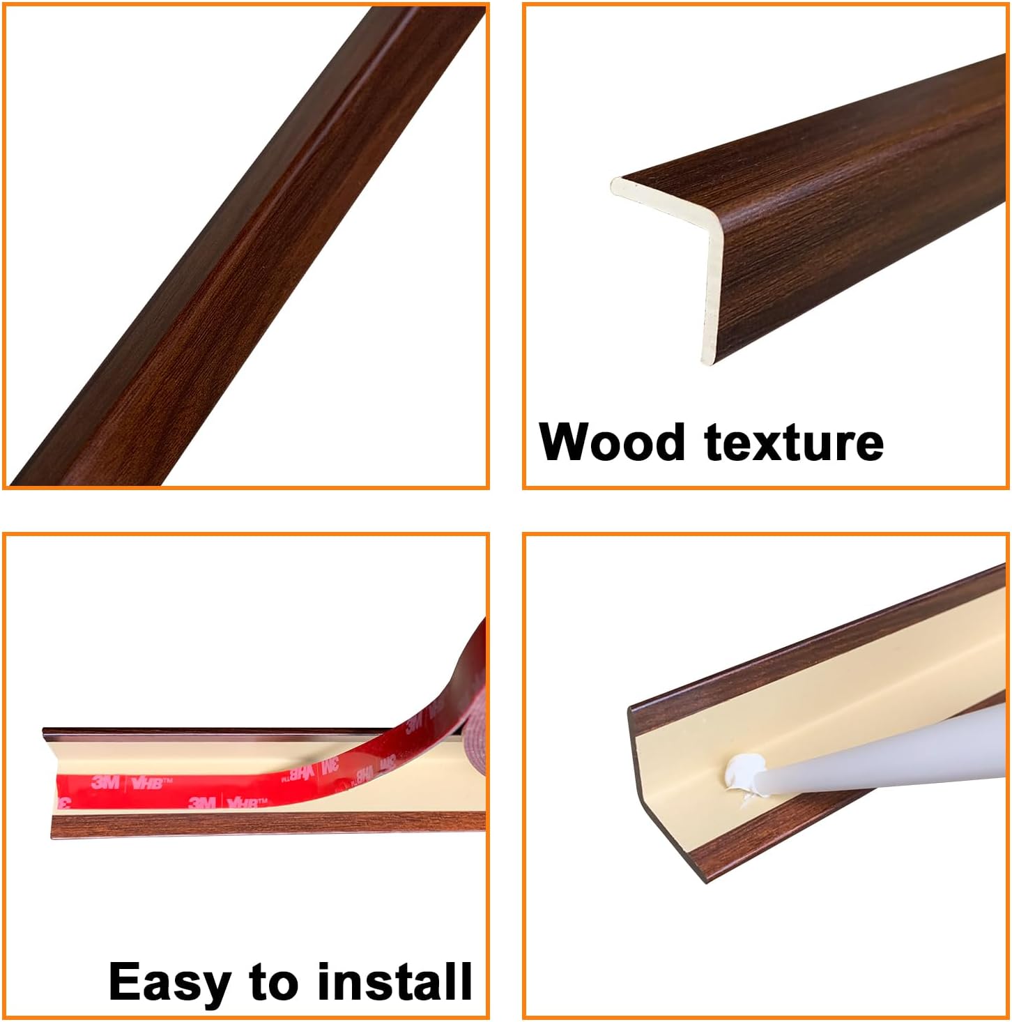Wall Corner Protector 6PCS 45" Corner Molding Trim Black Wood Grain Corner Trim Decorative Strips for Door and Window Frames Mirror Edges Ceramic Tiles, and Wooden Wall Edges.