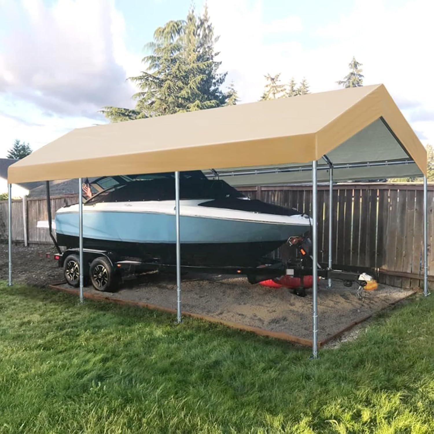 Carport Replacement Canopy Cover for Car Tent Top Garage Shelter Cover Tarp with Ball Bungees (Only Top Cover, Frame Not Include) (Beige 10’ x 20‘)