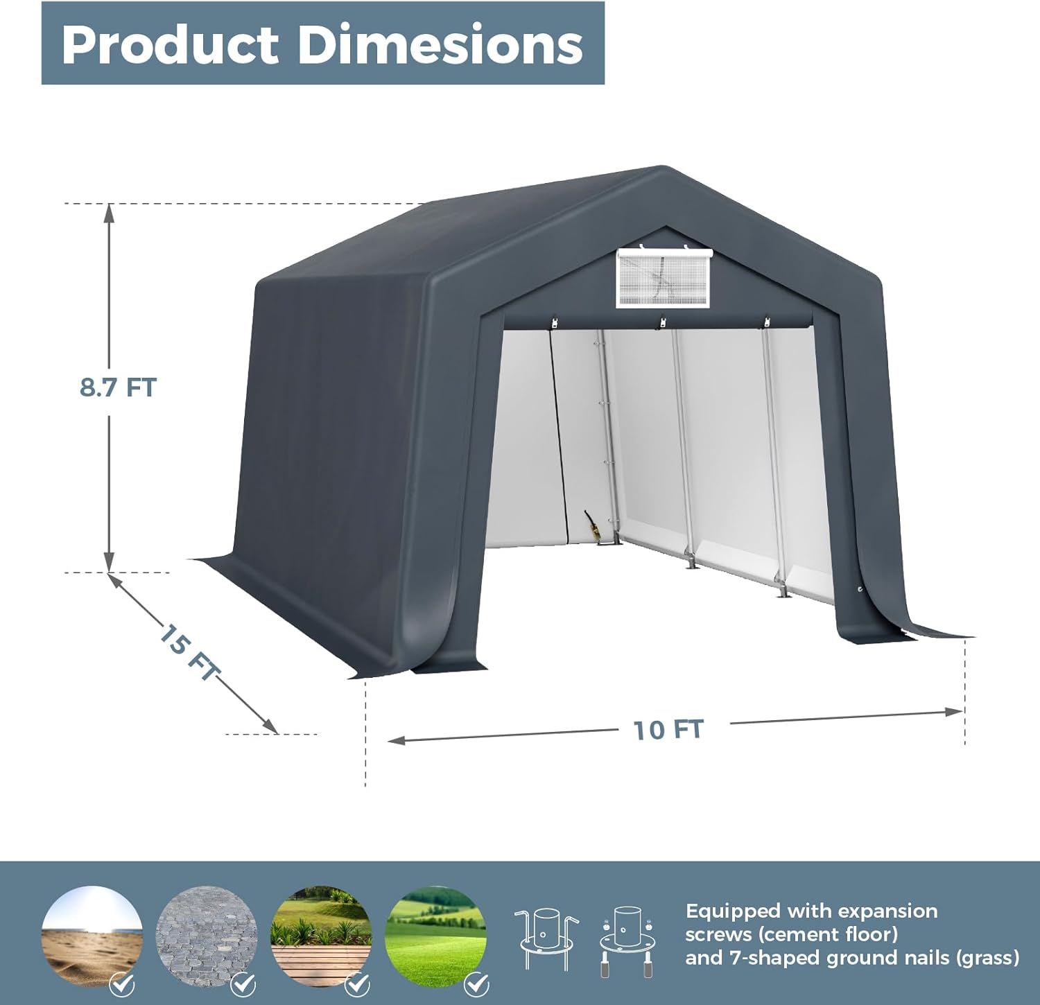 - 【Roll-up Ventilation Windows Design】 Our outdoor storage shed carport doors feature dual zippers and buckles for easy removal or roll-up. Equipped with a mesh window, they offer superior ventilation, promoting airflow and reducing moisture build-up.