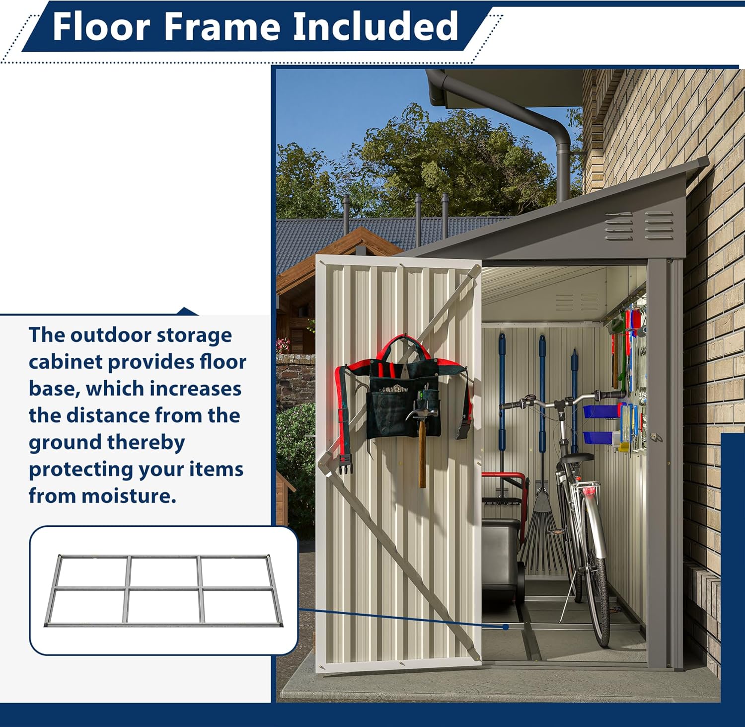 - DURABLE CONSTRUCTION : With Outdoor Storage Sheds, durability is a priority. These sheds are built to withstand various weather conditions, ensuring long-lasting usage. Made of weather-resistant galvanized coated metal that is rust, oxidation, and moisture resistant. Reliable protection is available for your valuable outdoor equipment.