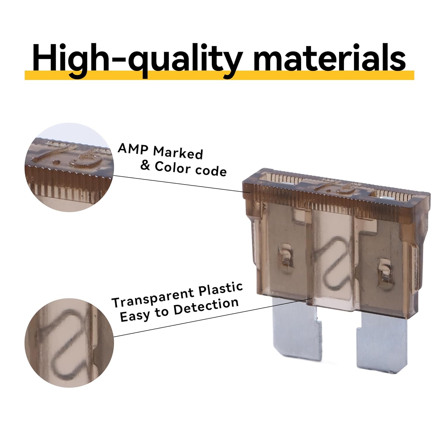 - DURABLE - Terminals are constructed from tin-plated zinc for corrosion resistance and enhanced conductivity. Fuses made of premium materials, fast and precise fusing current to protect your vehicles and electrical devices from a short circuit and overload.