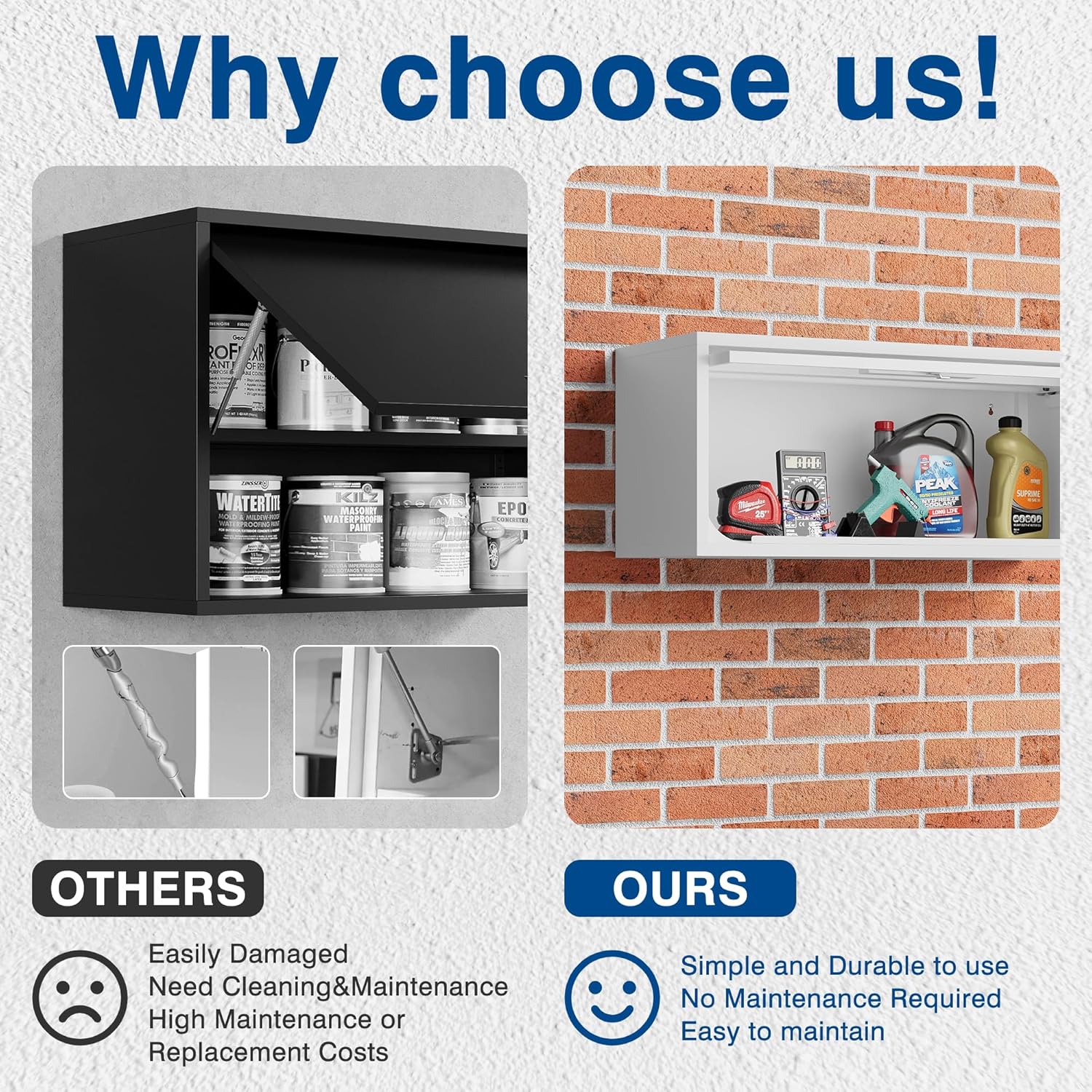 - Revolutionary Upgraded Opening and Closing System: Traditional left-right opening methods carry a risk of bumping heads. Our storage cabinets feature a unique top-bottom opening mechanism, where the entire door can be recessed into the cabinet itself, making full use of upper space and facilitating easy access to items stored inside.