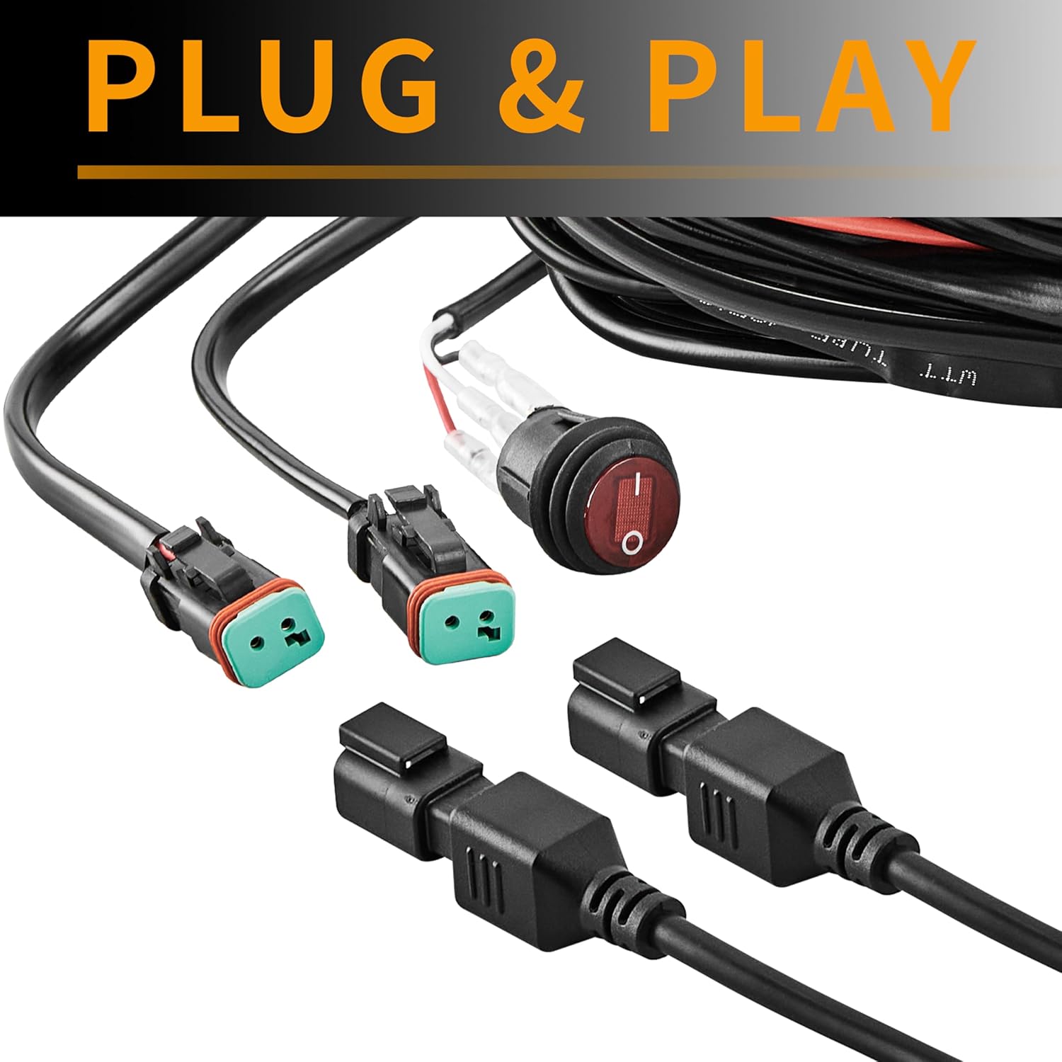 - Pack Includes: 2 Pack 5 Inch LED light pods. 1 Kit 3 Meters Waterproof Wiring Harness, DT connectors.