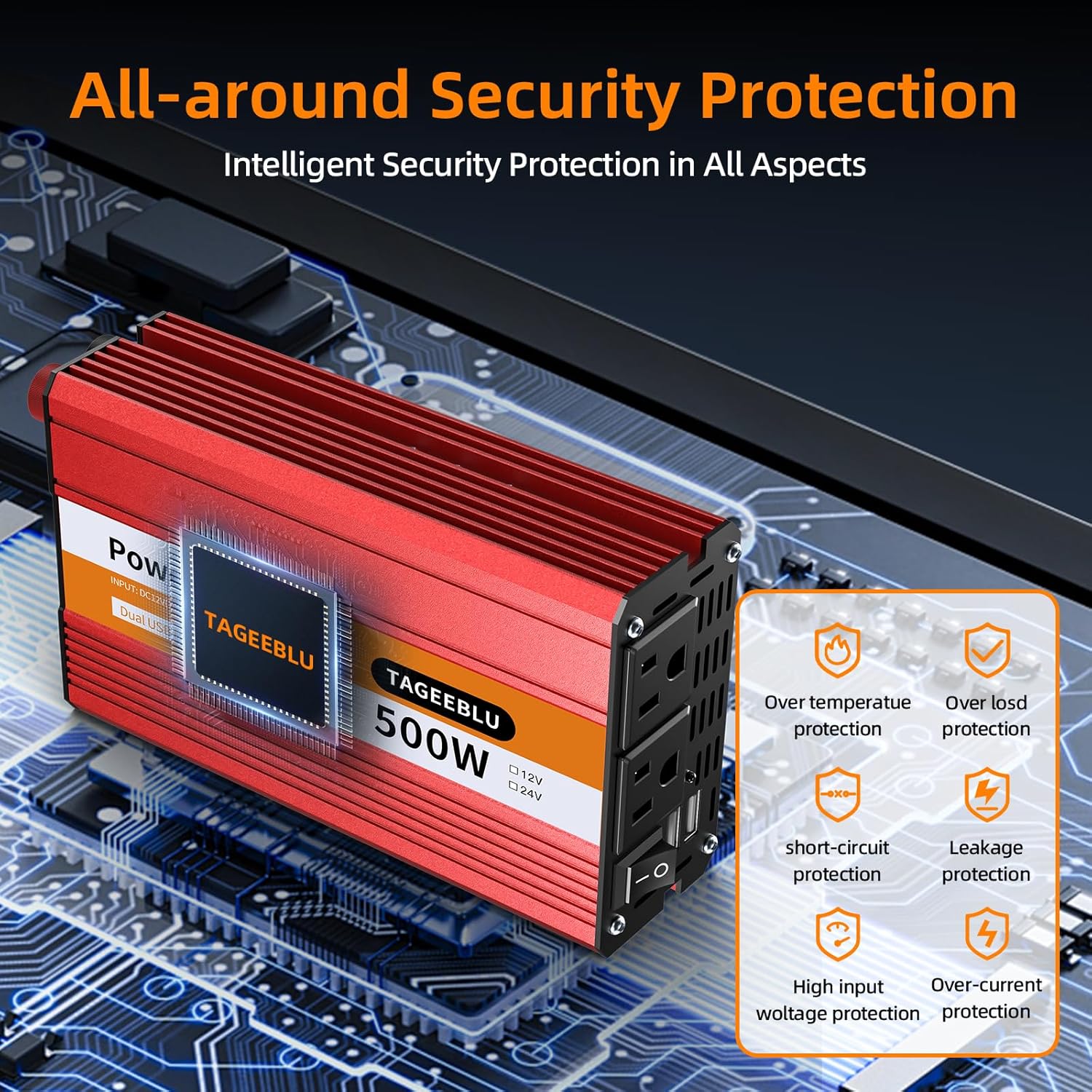 - 【Quiet cooling fan】The smart cooling fan will automatically rotate at different speed according to power load and temperature, this design can help to reduce the fan noise.Also the high speed cooling fan protect the inverter against overheating