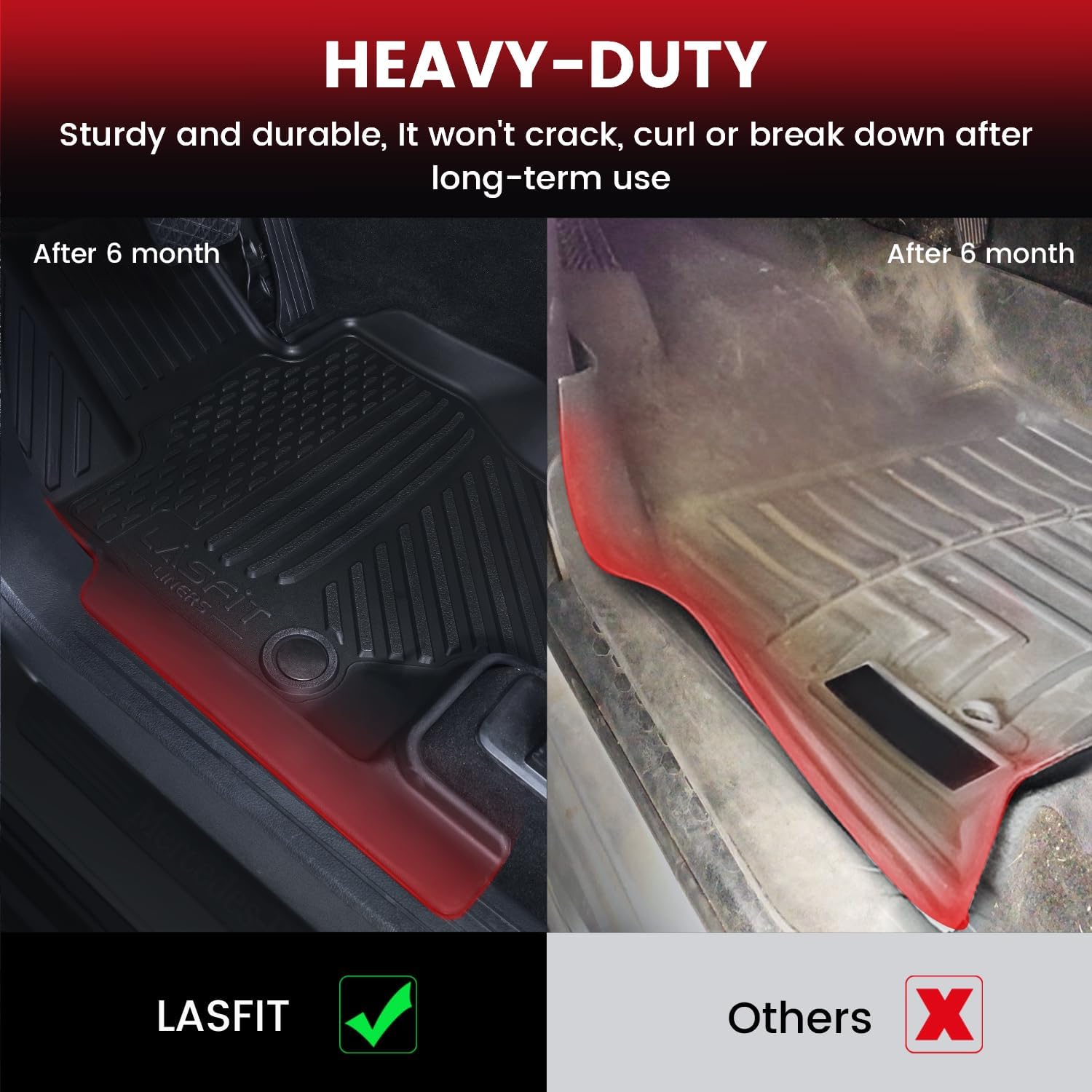 - Why Choose LASFIT : LASFIT has been established for about 10 years. We use high quality raw materials, the floor mat are thicker, heavier, cover a larger area and are not easy to deform. We accept returns for any reasons in 30 days and provide local store support. You can consult customer service before purchasing.