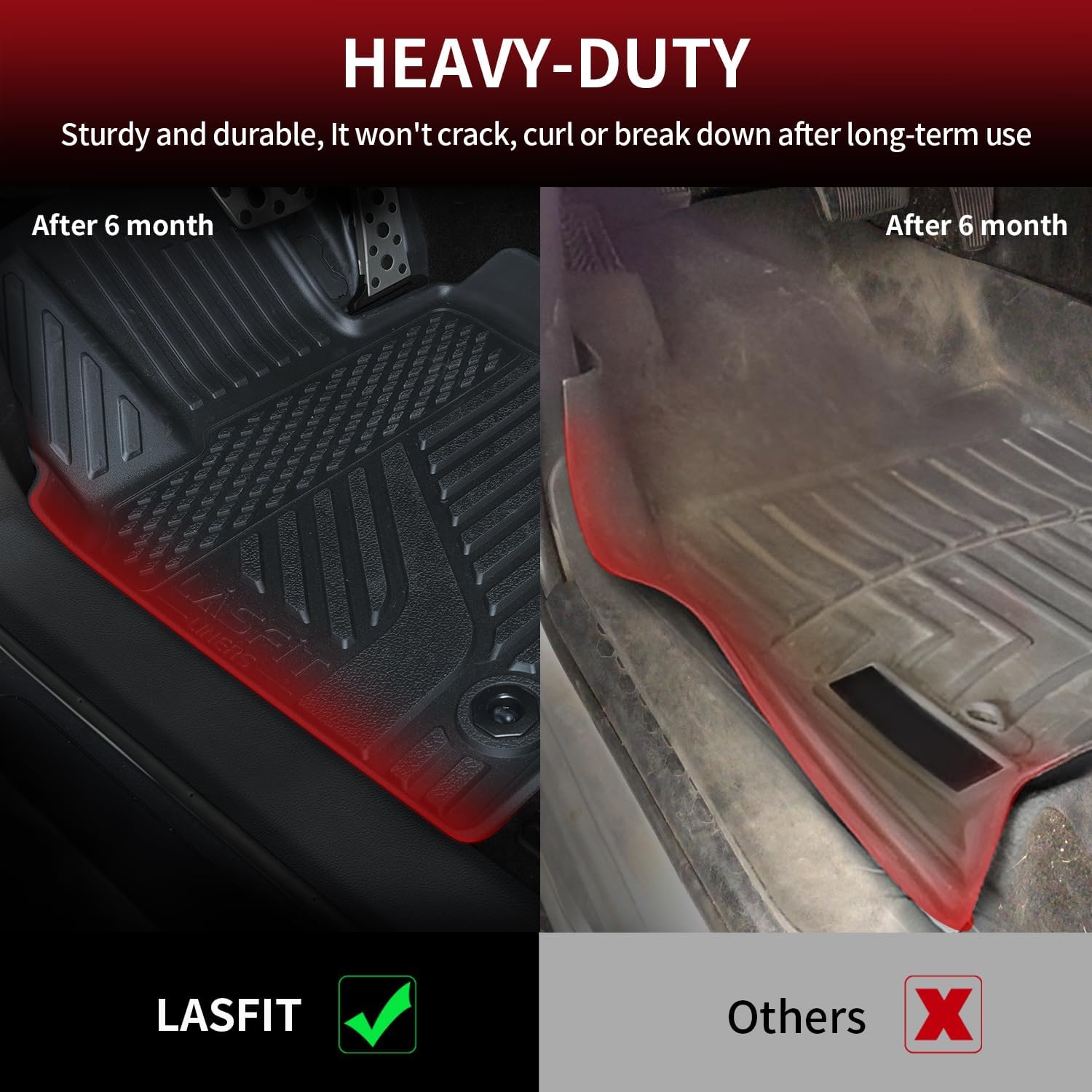 - ALL WEATHER PROTECTION - Lasfit camry floor mats Shield your floor from dirt, mud, salt, rain, snow, and even hot summer temperatures. Cleaning up daily wear and tear off our car mats is a breeze.