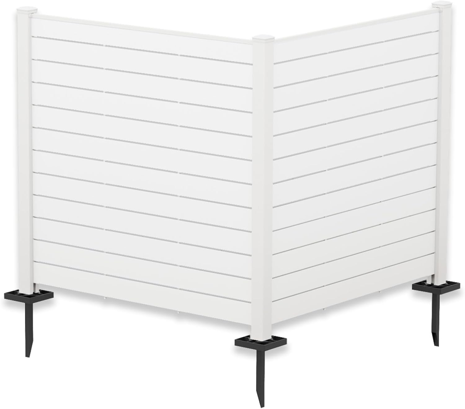 - 🏡 Dimensions: The Kozyard W50*H48*D50 inches Privacy Fence Set includes 3 vinyl panels. The 11-inch galvanized steel stakes are easily inserted into the ground to provide a firm base for the panels, reducing direct damage from heavy rain or storms, enhancing aesthetics, and boosting durability.
