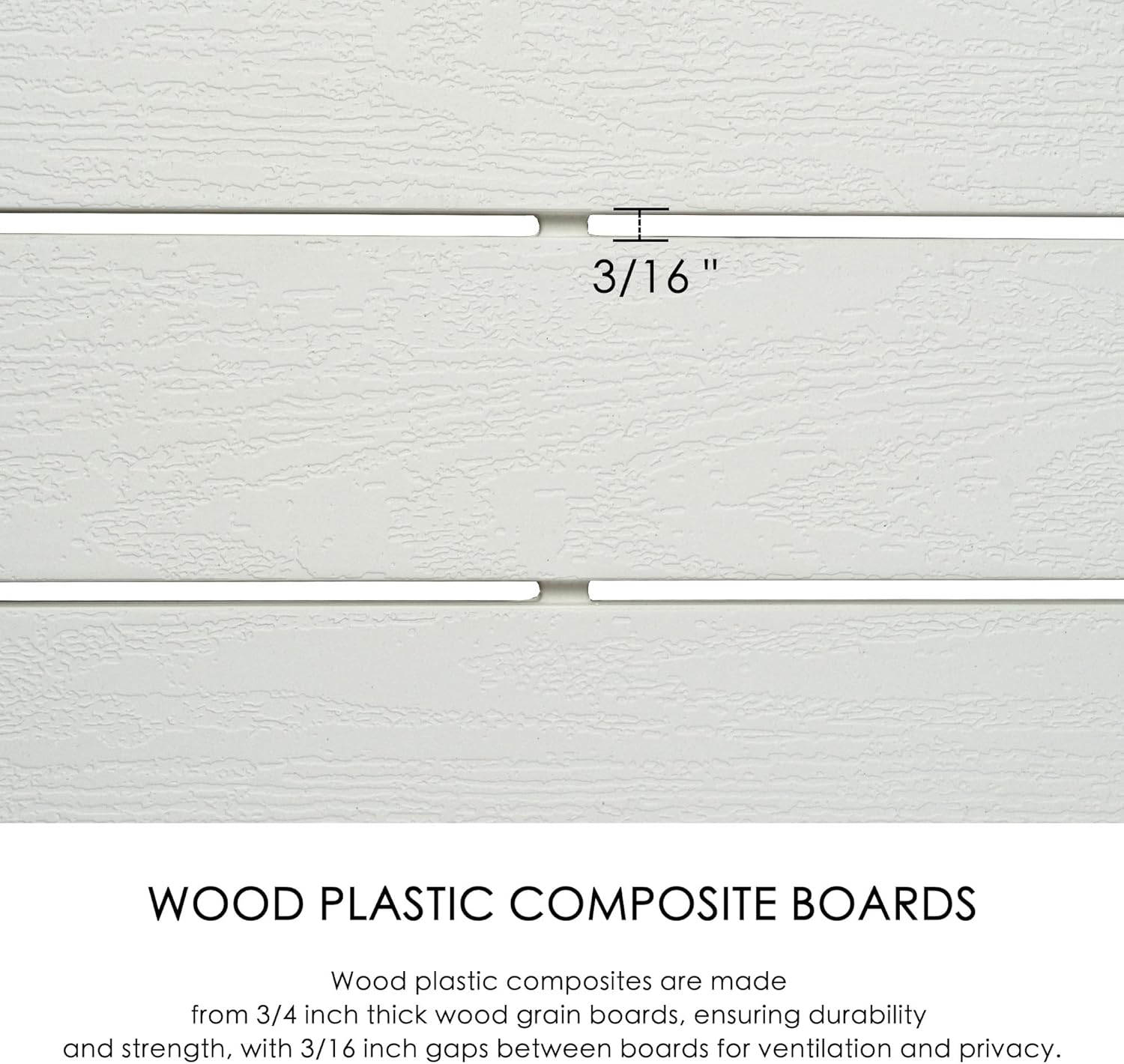 - 🏡 High-Quality Material: Our outdoor privacy screens are crafted from medium-density polyethylene, designed with a wood-like appearance that is more resistant to water and corrosion than cast iron. The 3/16-inch gaps between the boards provide ventilation while maintaining privacy. The smooth surface resists dust and stains, and the simple white color complements any setting.