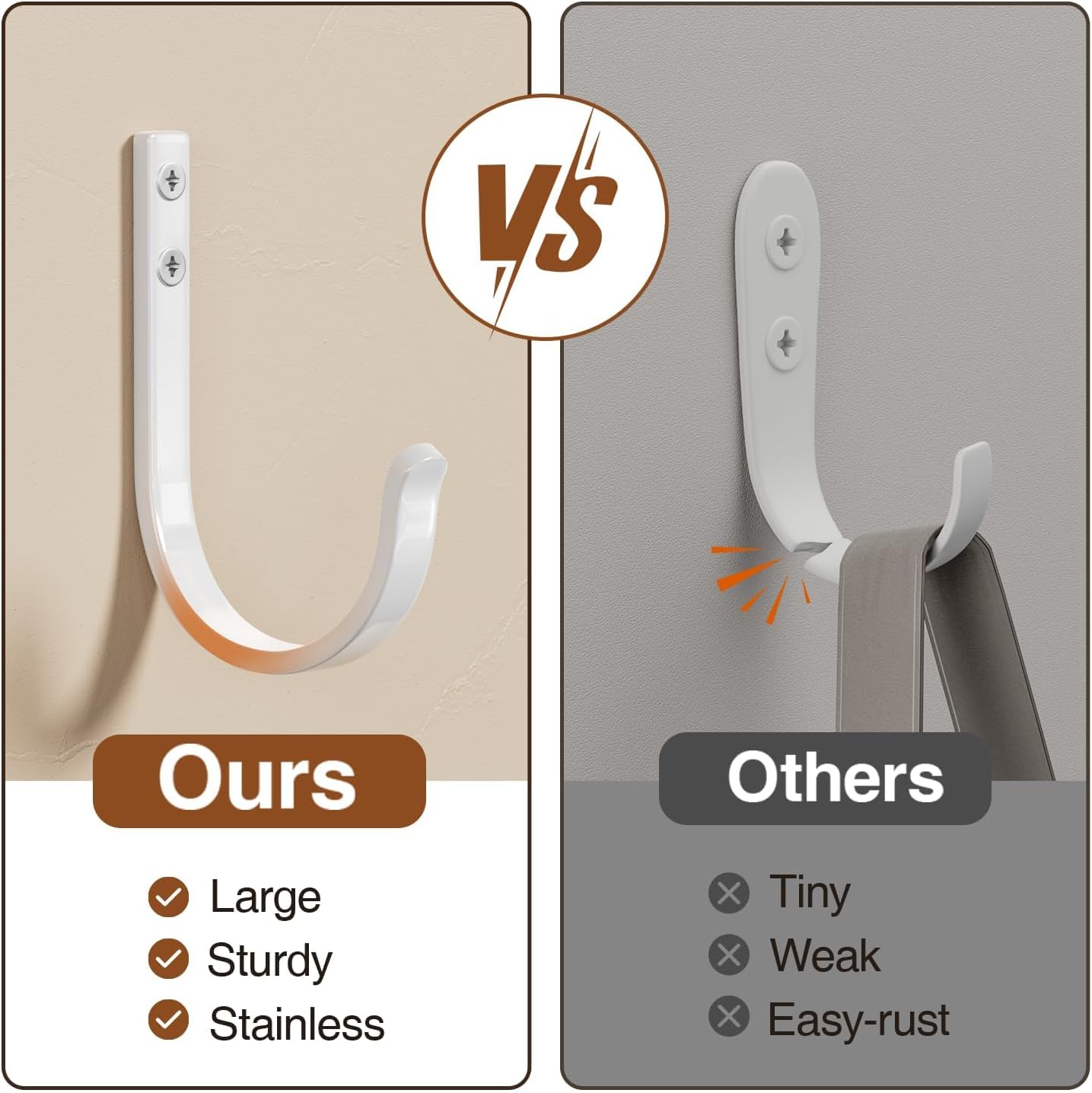 10-Pack Wall Hooks for Towel/Coat - 22LB Heavy Duty Metal Hanger Wall Mount, for Outdoor, Closet, Door, Shelf, Bathroom, for Backpack, Cup, Clothes, Mug, White Matte Screws Included