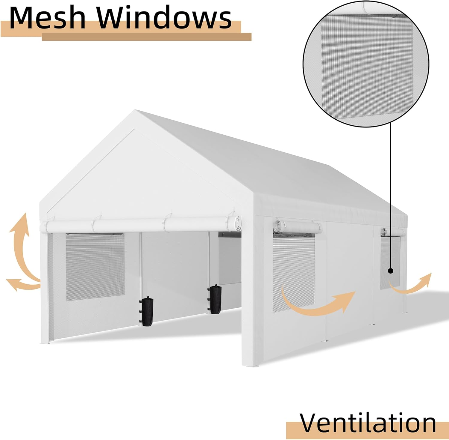 - Removable Sidewalls & Doors: Customize your carport according to your needs. The removable sidewalls and doors provide versatility, allowing you to create an open or closed space as desired.