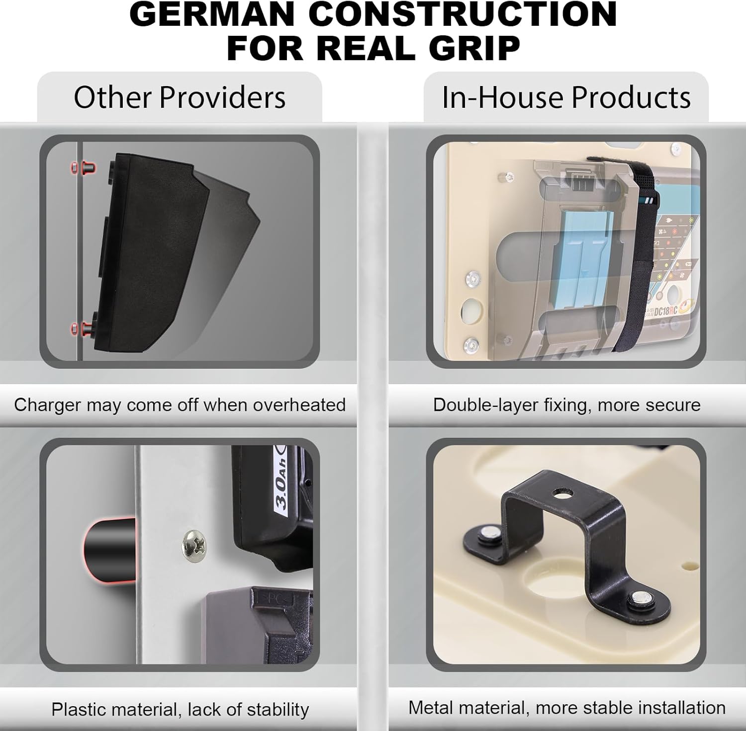 - Easy Wall Installation – No more lost batteries under tool piles!Designed for Makita battery storage, reinforced nylon slots with anti-tip design secure DC18RC charger vertically. Includes complete installation accessories. Workshop-tough yet Garage-friendly.