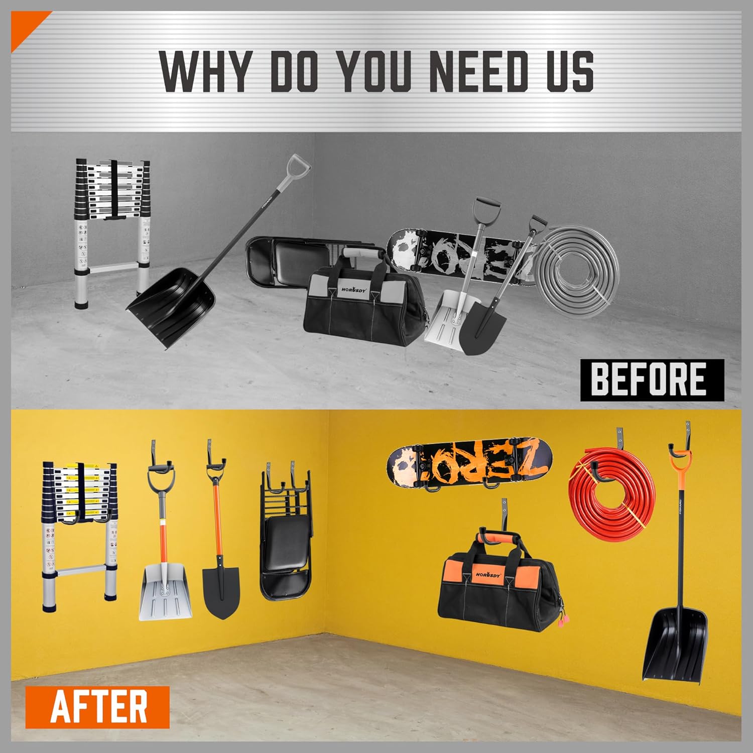 - garage utility hook can install easily on stud walls,hardwood, block or brick with screws.