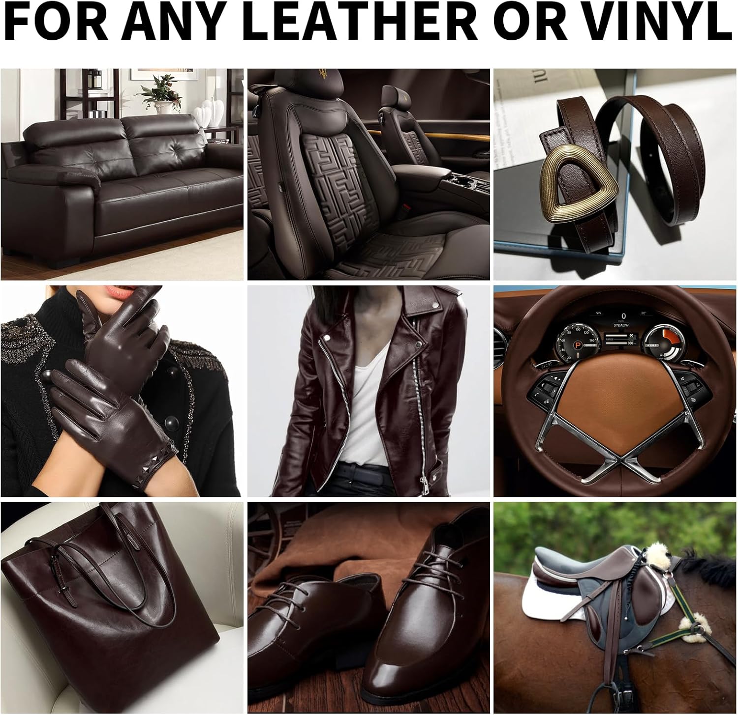 - 【Versatile Application】Our leather repair kit is versatile and can be used on a variety of leather and vinyl items, such as sofas, furniture, couches, and automotive interiors, wallets, shoes and boots, tool pouches, saddles, purses, belts and jackets, armrests, and gloves. Its wide-ranging applicability makes it the perfect choice for meeting diverse leather restoration needs.
