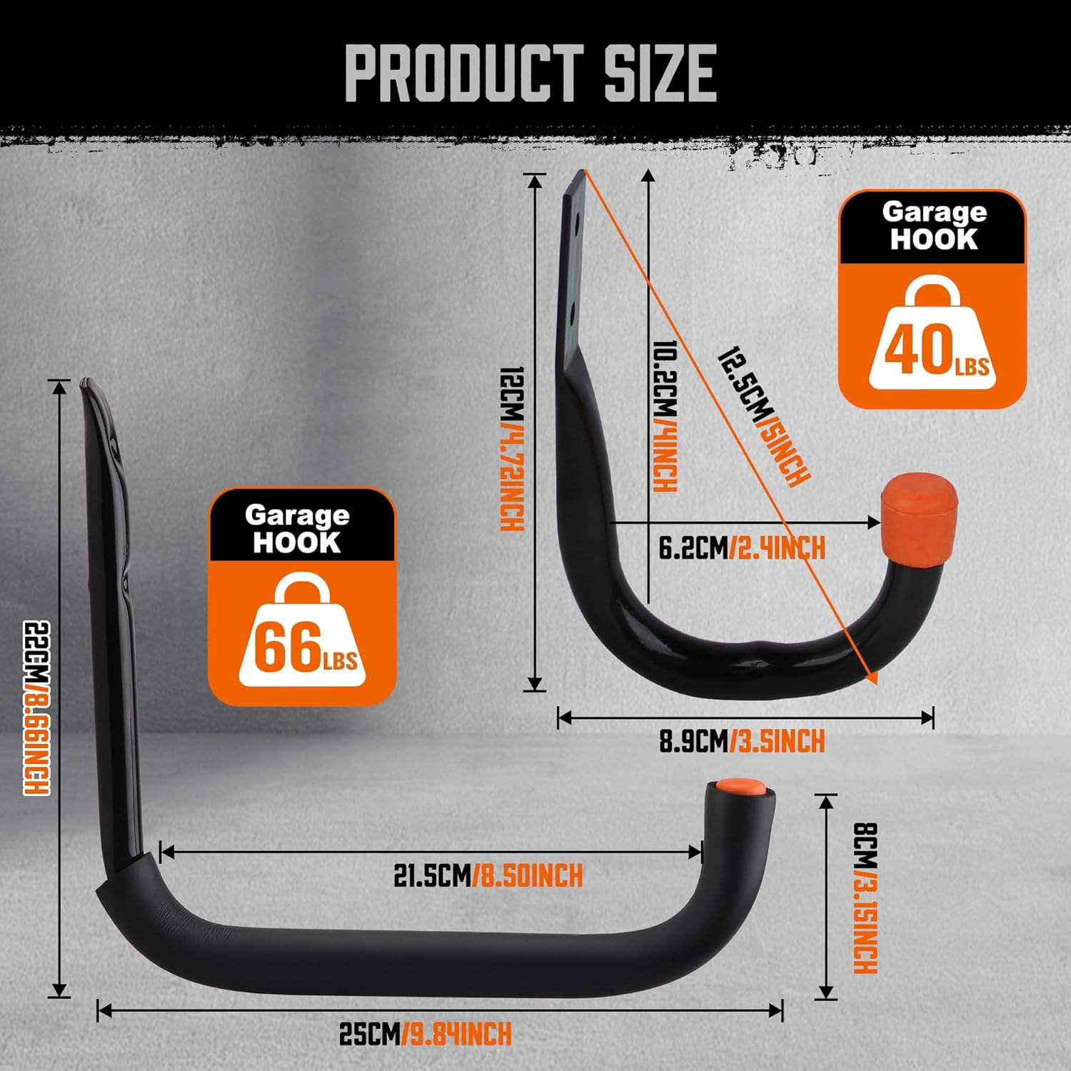- The heavy-duty hook for garage storage is 9 inches long and more practical. There is a layer of EVA protective layer on the surface of the metal tube to ease and protect your items.