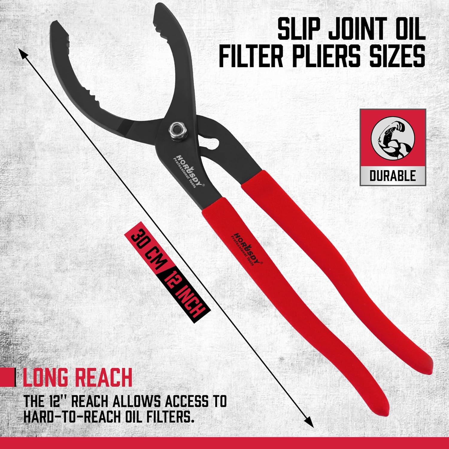 HORUSDY 12" Adjustable Oil Filter Pliers, Adjustable Oil Filter Wrench Removal Tool (Red)