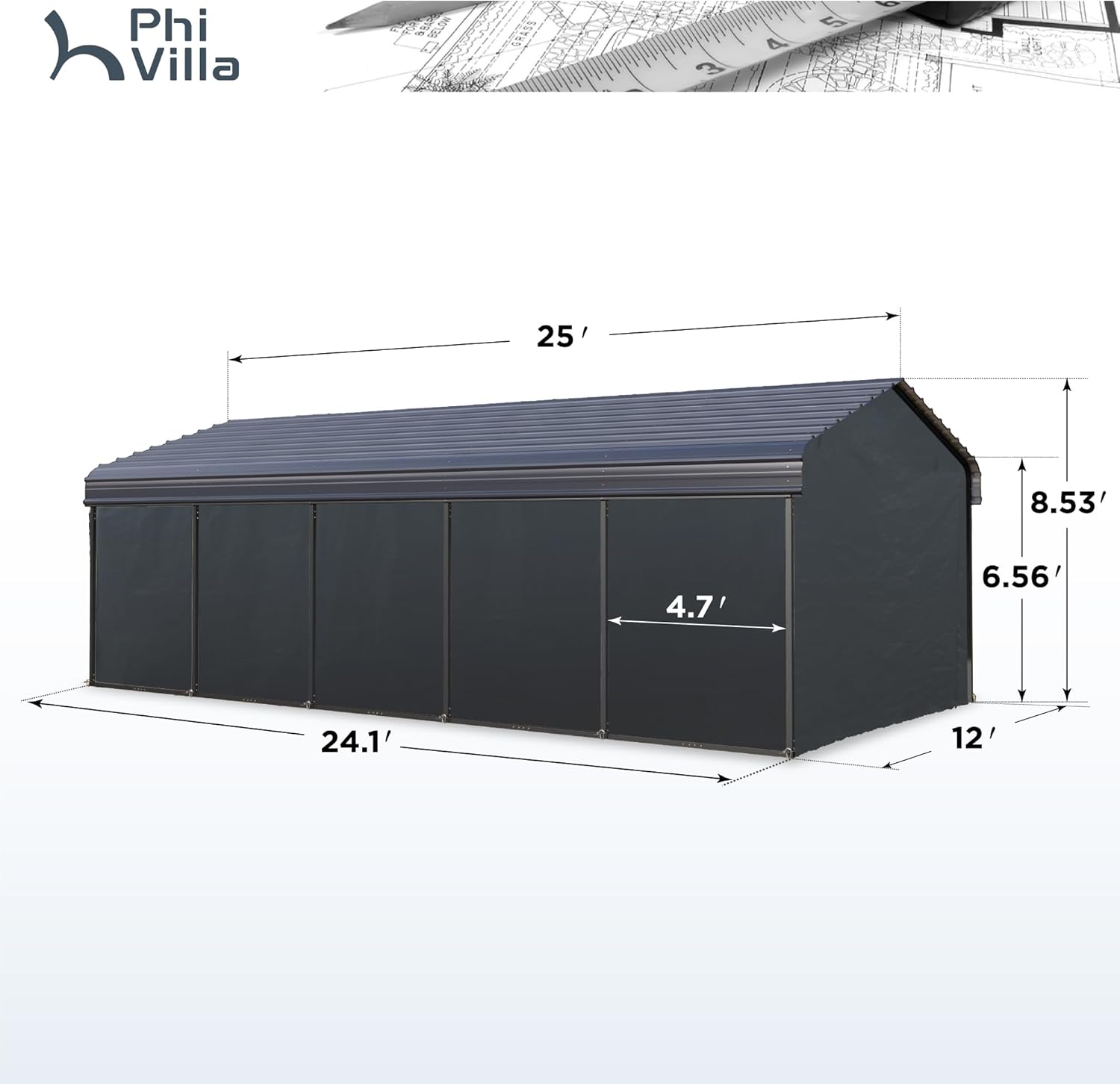 - Dimensions: The fully assembled shed steel carport measures 12" x 25" x 9", Please kindly note that this carport will be delivered in a total of 5 boxes which may arrive at different Please wait patiently for all boxes before installing them. , For customer support, questions, and concerns, please contact us. We promise to respond to any customer message within 24 hours.