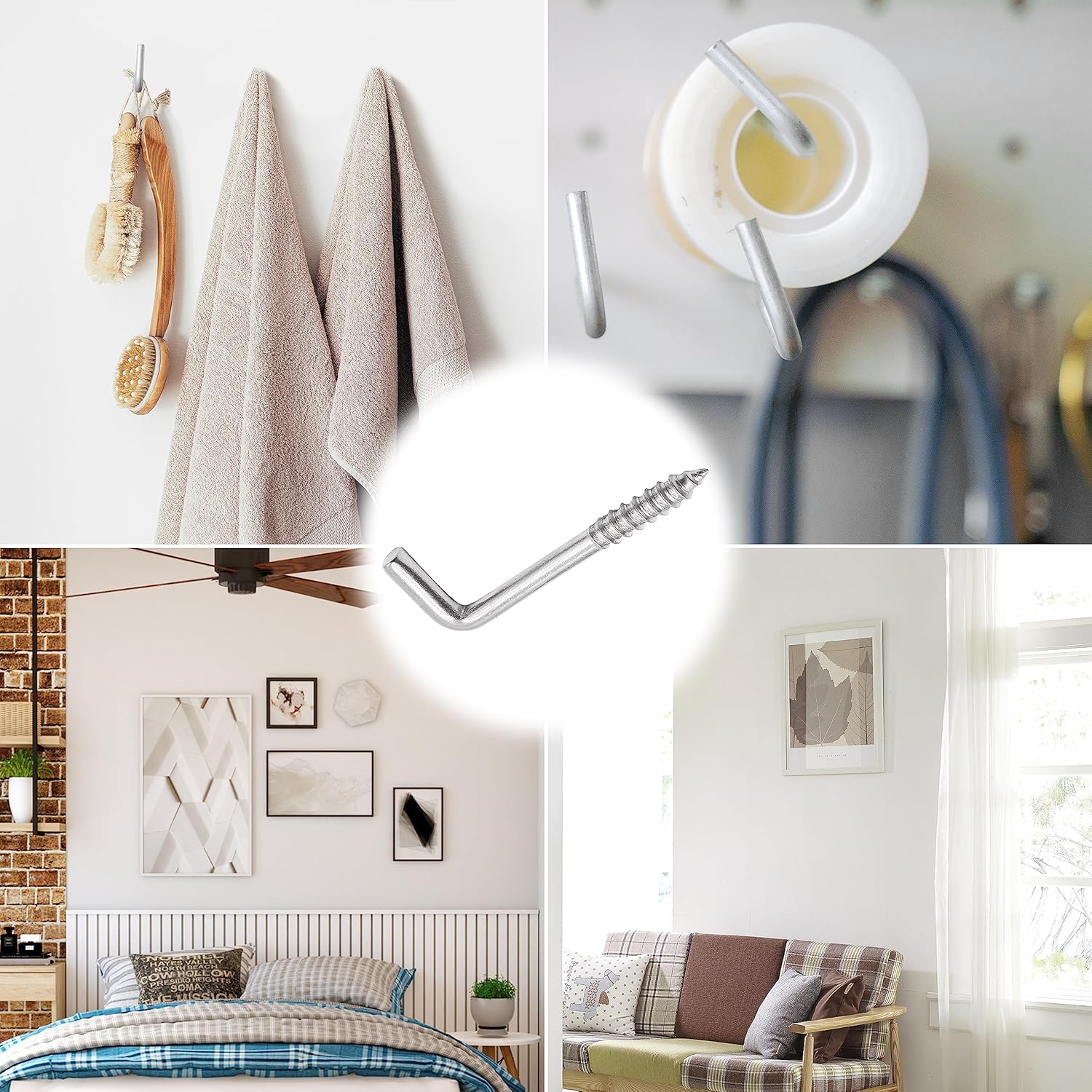 304 Stainless Steel 2 in Screw-in Hooks 60 Pcs,7 Shape Screw Hooks,Right Angle Medal Hooks l Shaped Screw in Hooks for Hanging
