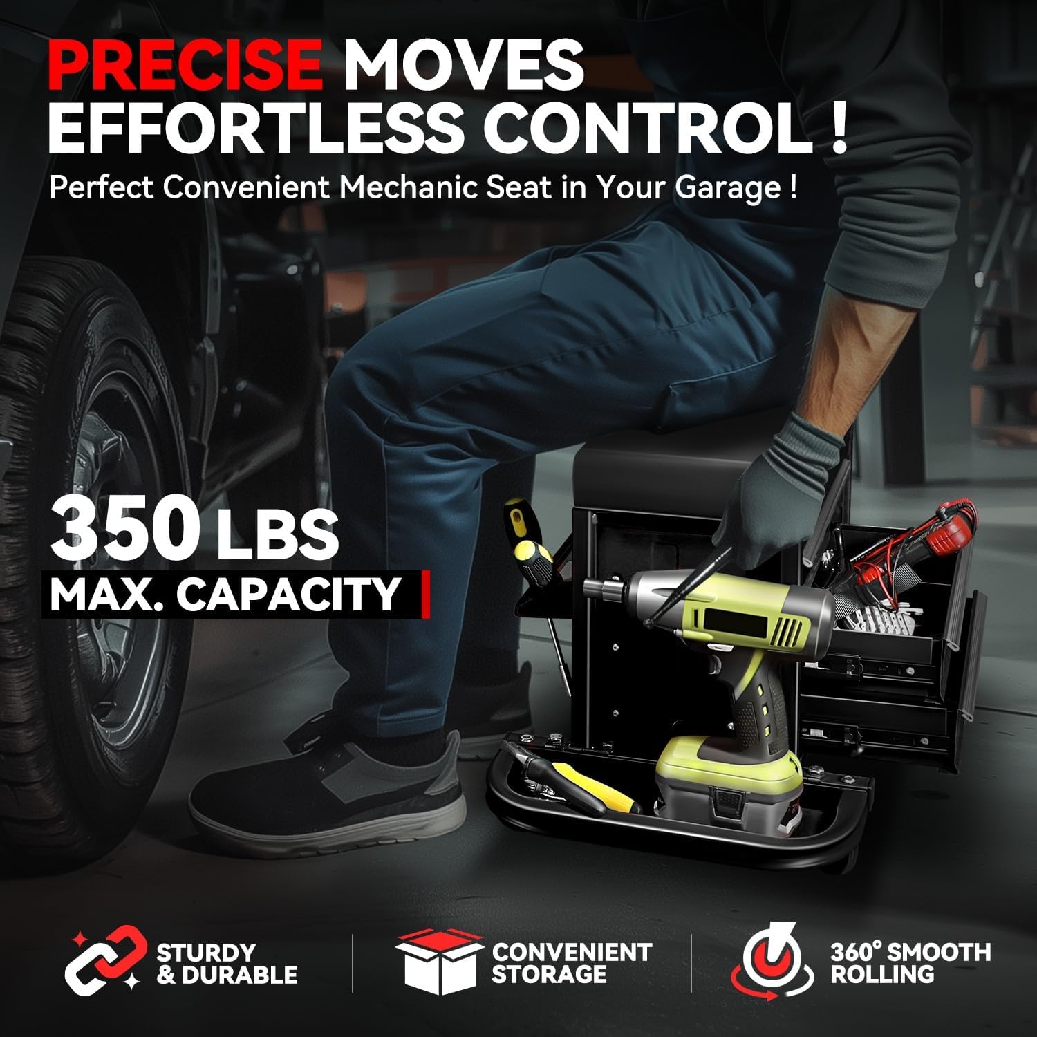 - 360-Degree Swivel Casters: Our tool chest seat features 4 x 2.5-inch swivel casters, allowing for smooth maneuvering in your garage, reducing the time spent moving around, letting you focus on the job at hand