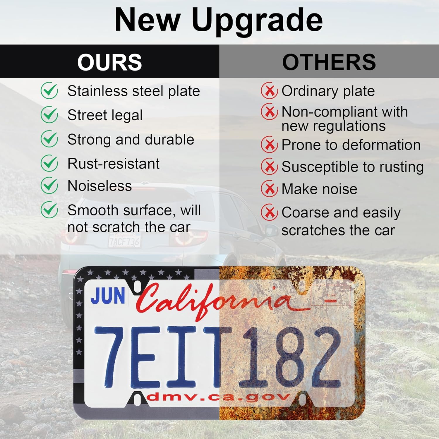- 【Durable and Weather-Resistant】Crafted from high-quality stainless steel, these license plate frames resist rust, corrosion, wear, water, and high temperatures. The 1.2mm thick powder coating ensures they are fade and chip-resistant, maintaining durability and a stylish appearance in all weather conditions.