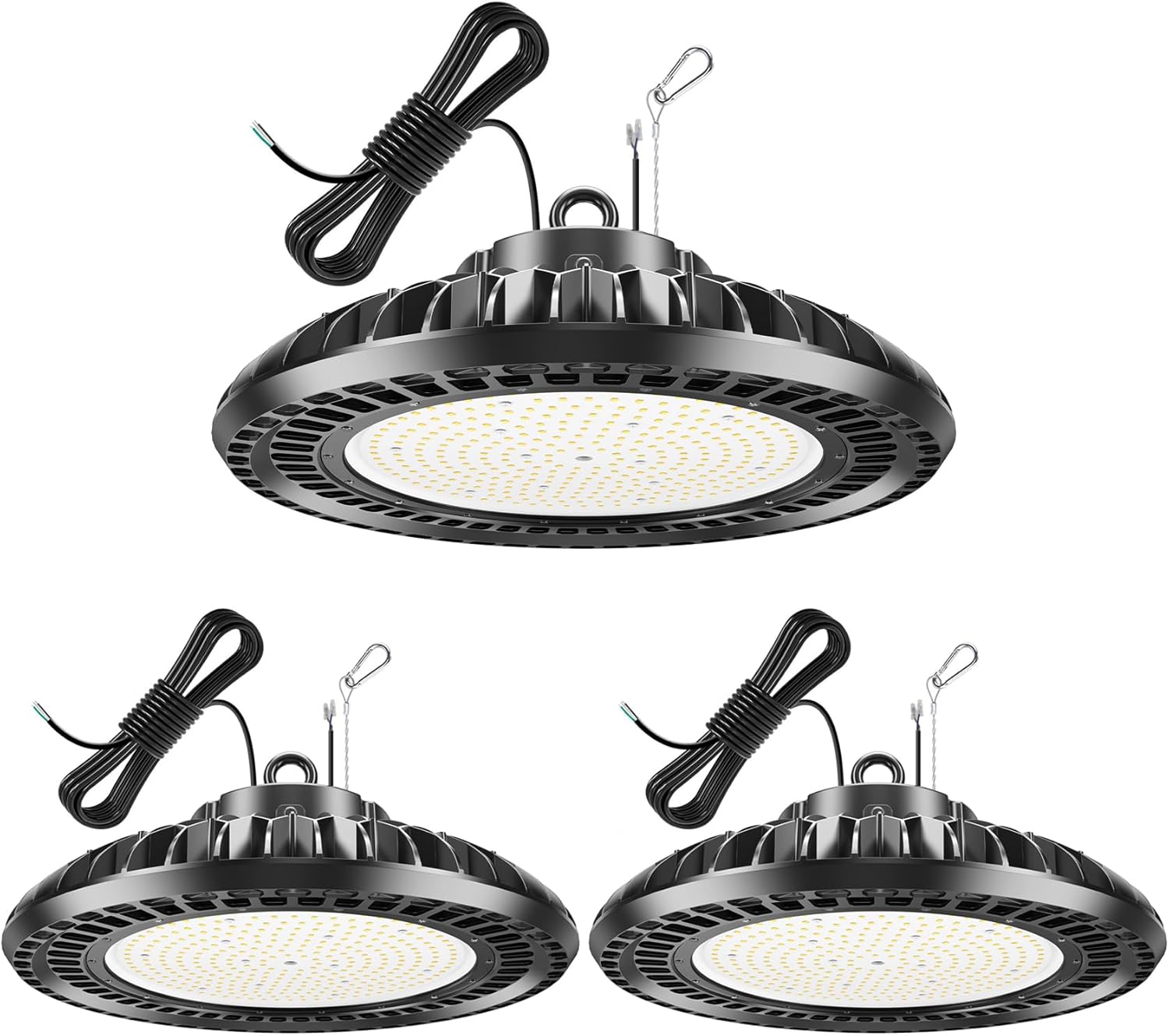 3 Pack 400W LED High Bay Light 56000LM 5000K 120VAC UFO Light IP65 Waterproof Dimmable Commercial Bay Lighting for Workshop|Garage|Factory -ETL&DLC Listed