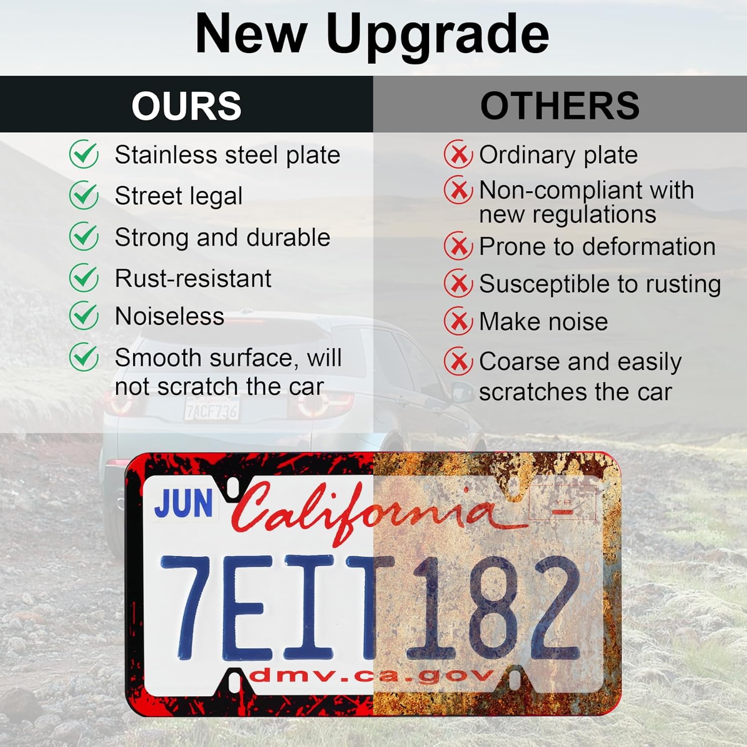 - 【Durable and Weather-Resistant】Crafted from high-quality stainless steel, these license plate frames resist rust, corrosion, wear, water, and high temperatures. The 1.2mm thick powder coating ensures they are fade and chip-resistant, maintaining durability and a stylish appearance in all weather conditions.