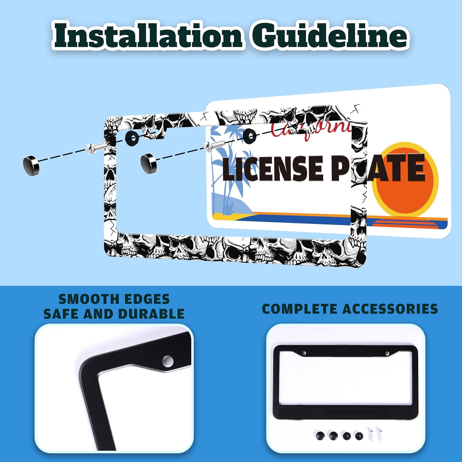 - STAINLESS STEEL LICENSE PLATE: The material is strong and not easy to bend, and can be used for a long time.The multi-layer protective design treatment improves your experience of using the license plate frame.