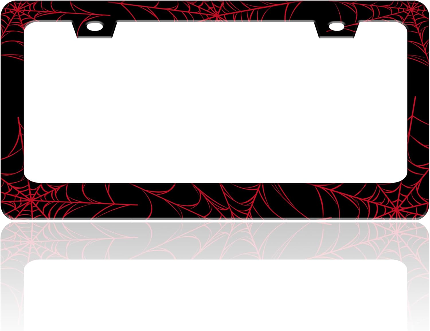 Red Spider Web License Plate Frame Funny Cobweb Stainless Steel License Plate Holder for Front or Rear Car Tags for Car Decoration Accessories with Screws 6.3 X 12.2 in for Women Men