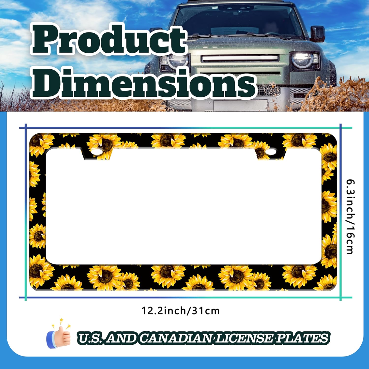 Sunflowers License Plate Frame Yellow Flowers Stainless Steel License Plate Holder for Front or Rear Car Tags Funny for Car Decoration Accessories with Screws 6.3 X 12.2 in for Women Men